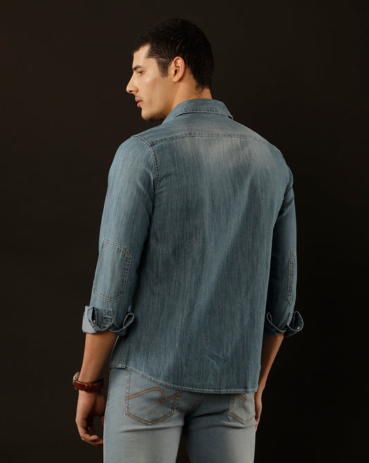 Men's Slim Fit Solid Denim Casual Shirt (POACH)