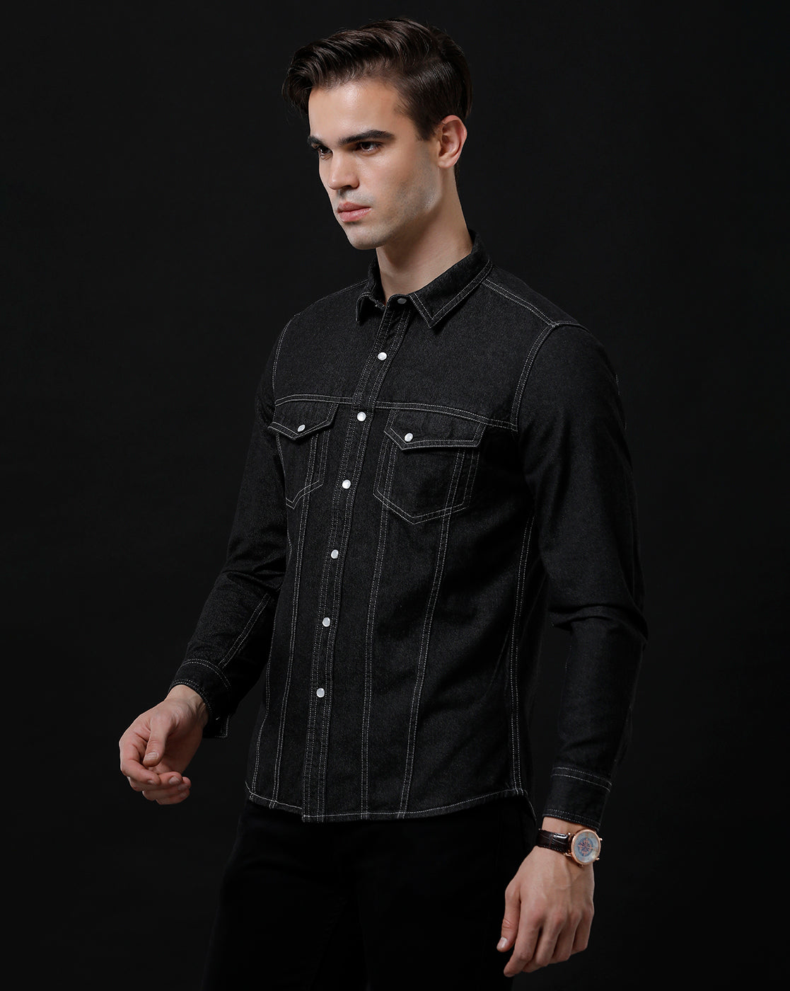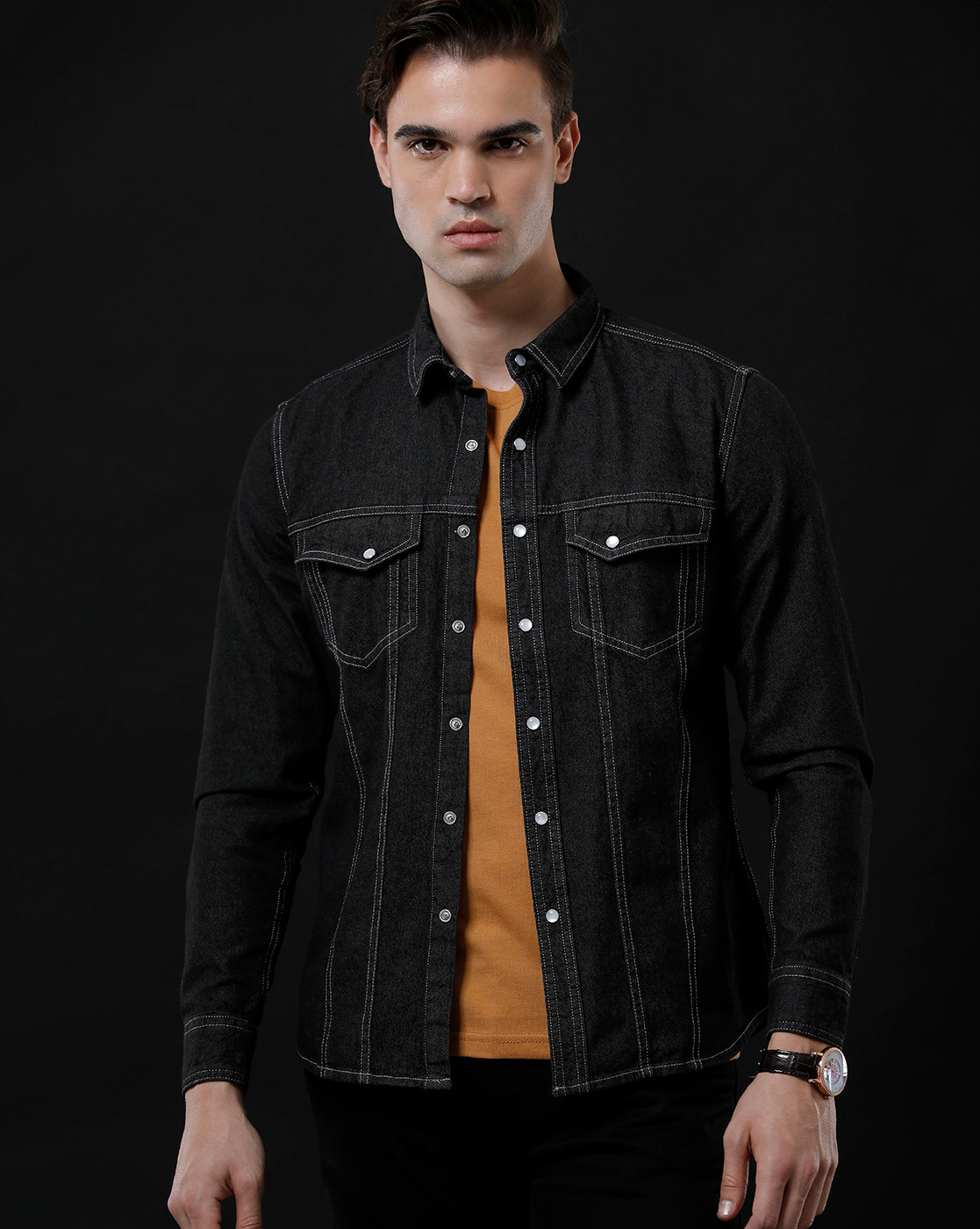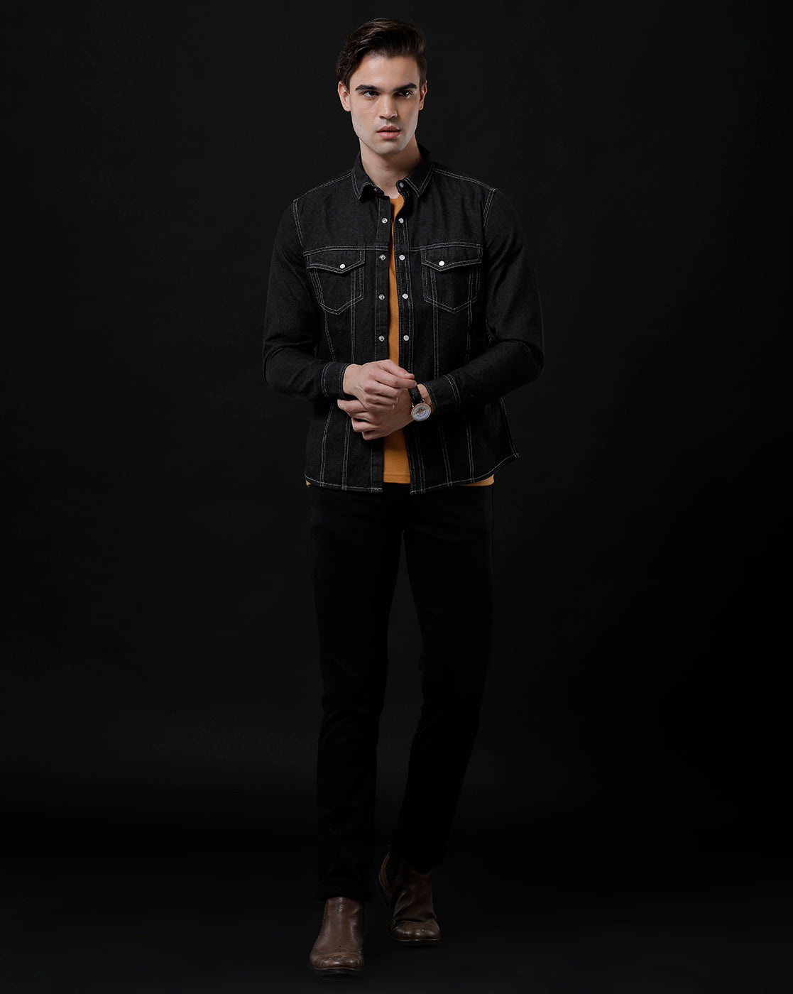 Take your fashion quotient one notch high by putting on this TEMPLE OF DENIM Denim Shacket . It is featured with full sleeves and is stitched to slim fit. Made with excellent quality denim, it promises to provide complete ease to the body. Team it with a black denim and sneaker for a casual look.