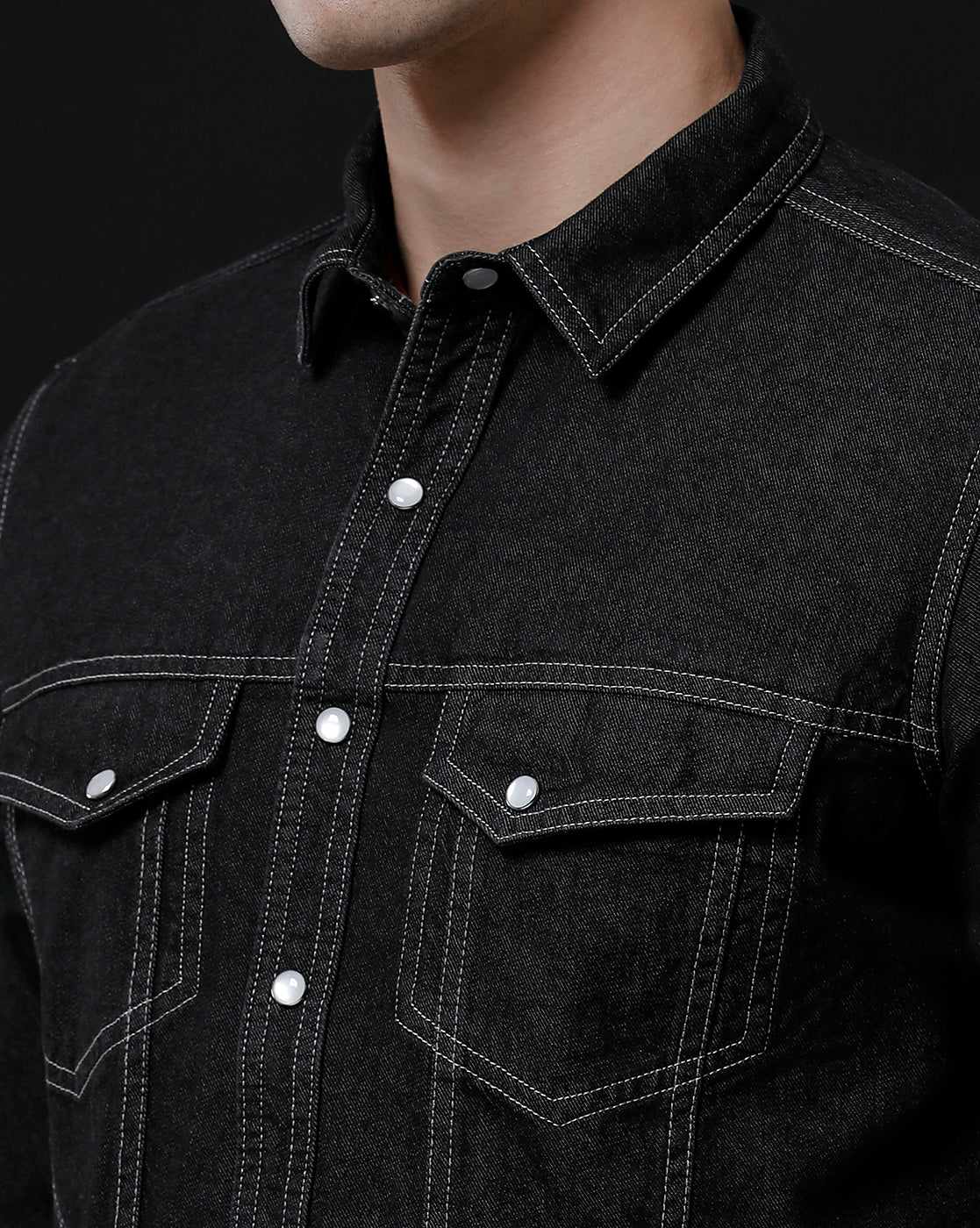 TEMPLE OF DENIM Men Washed Casual Shacket.