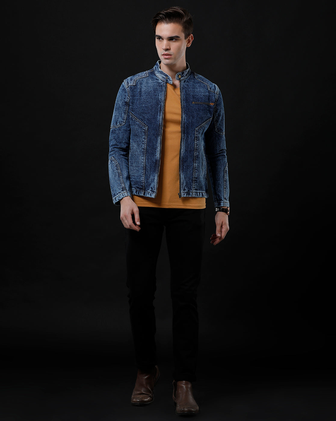 TEMPLE OF DENIM Full Sleeve Washed Men Denim Jacket.