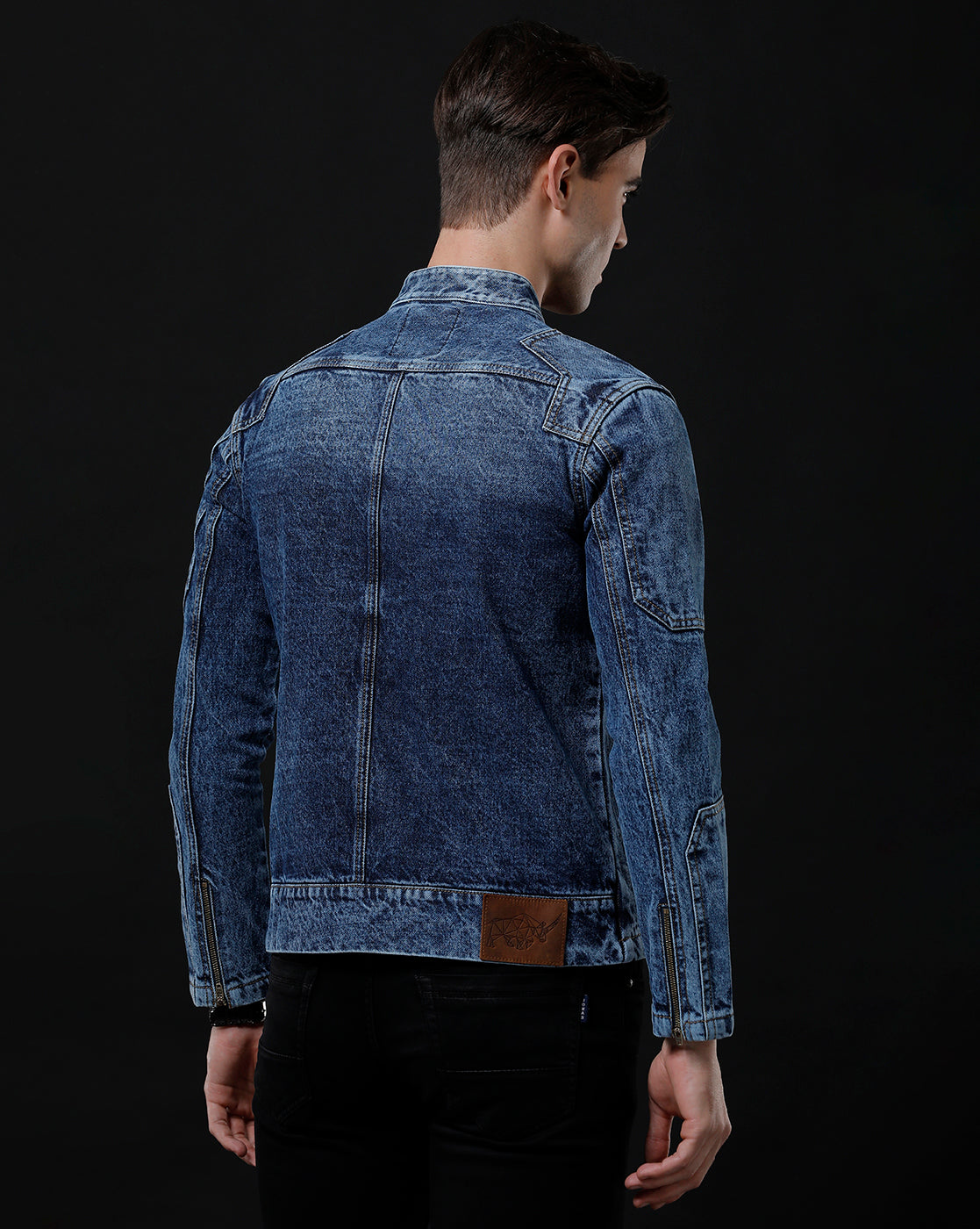 Introducing our UK brand's Denim Biker Jacket, a durable and stylish outerwear. The biker-inspired design features mandarin collar, asymmetrical zipper, quilted detailing and lined with warm material. Versatile and perfect for adding a touch of edge to any wardrobe.