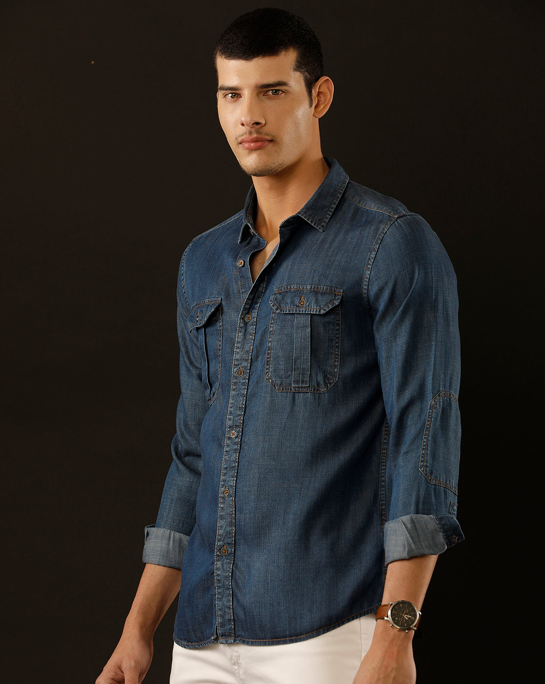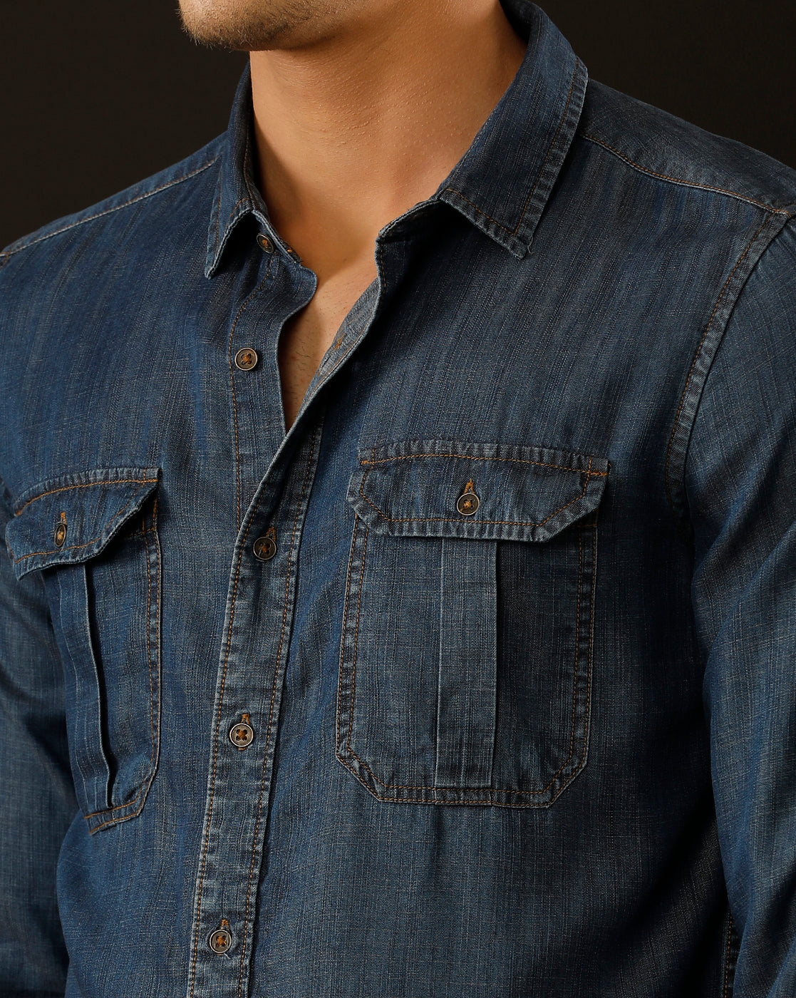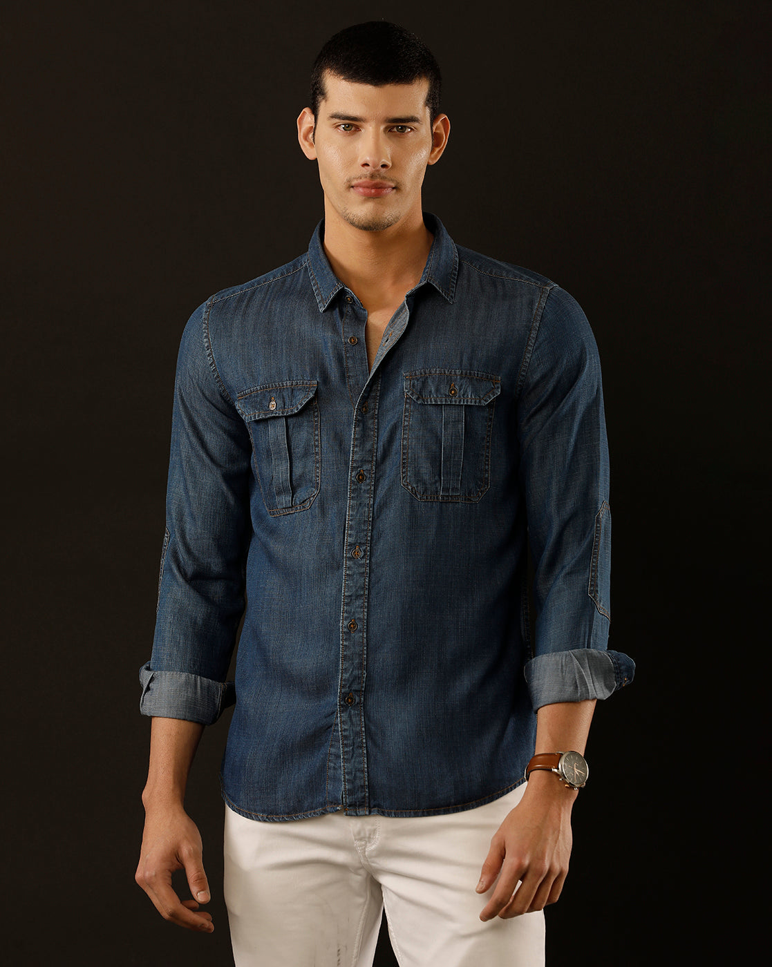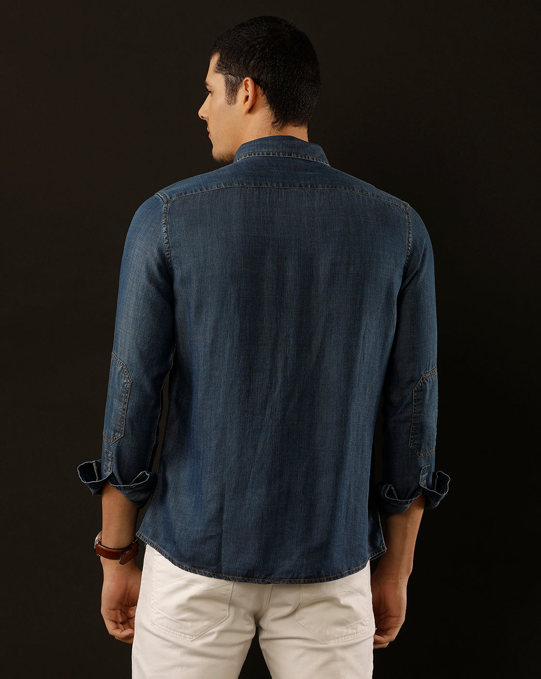 Men's Slim Fit Solid Denim Casual Shirt (PONDI)