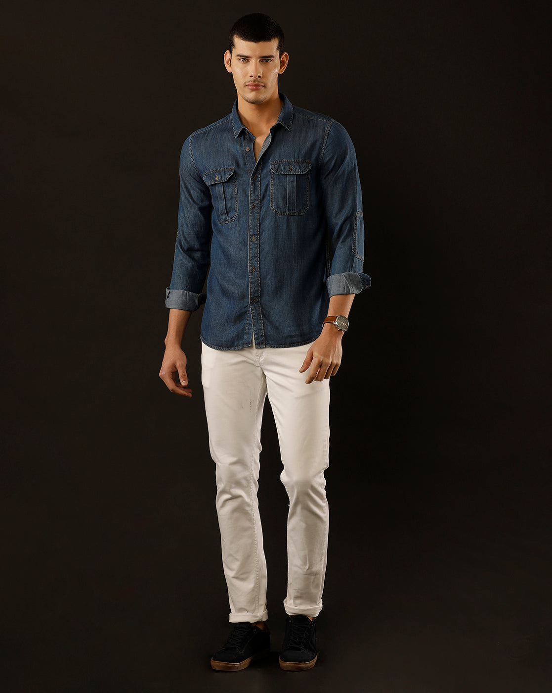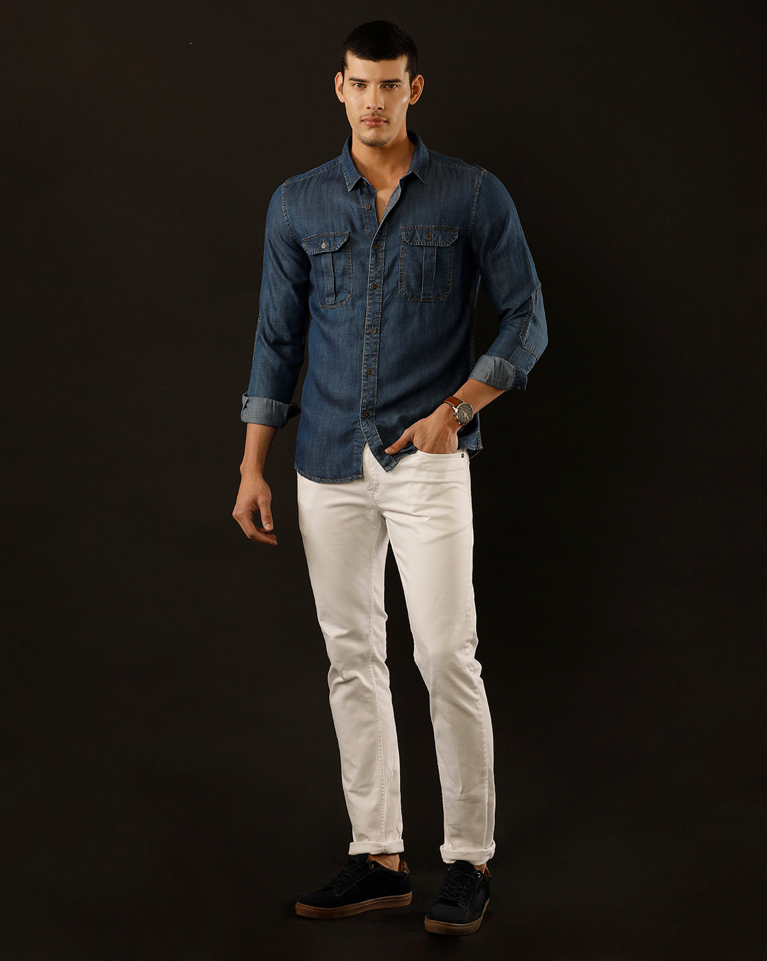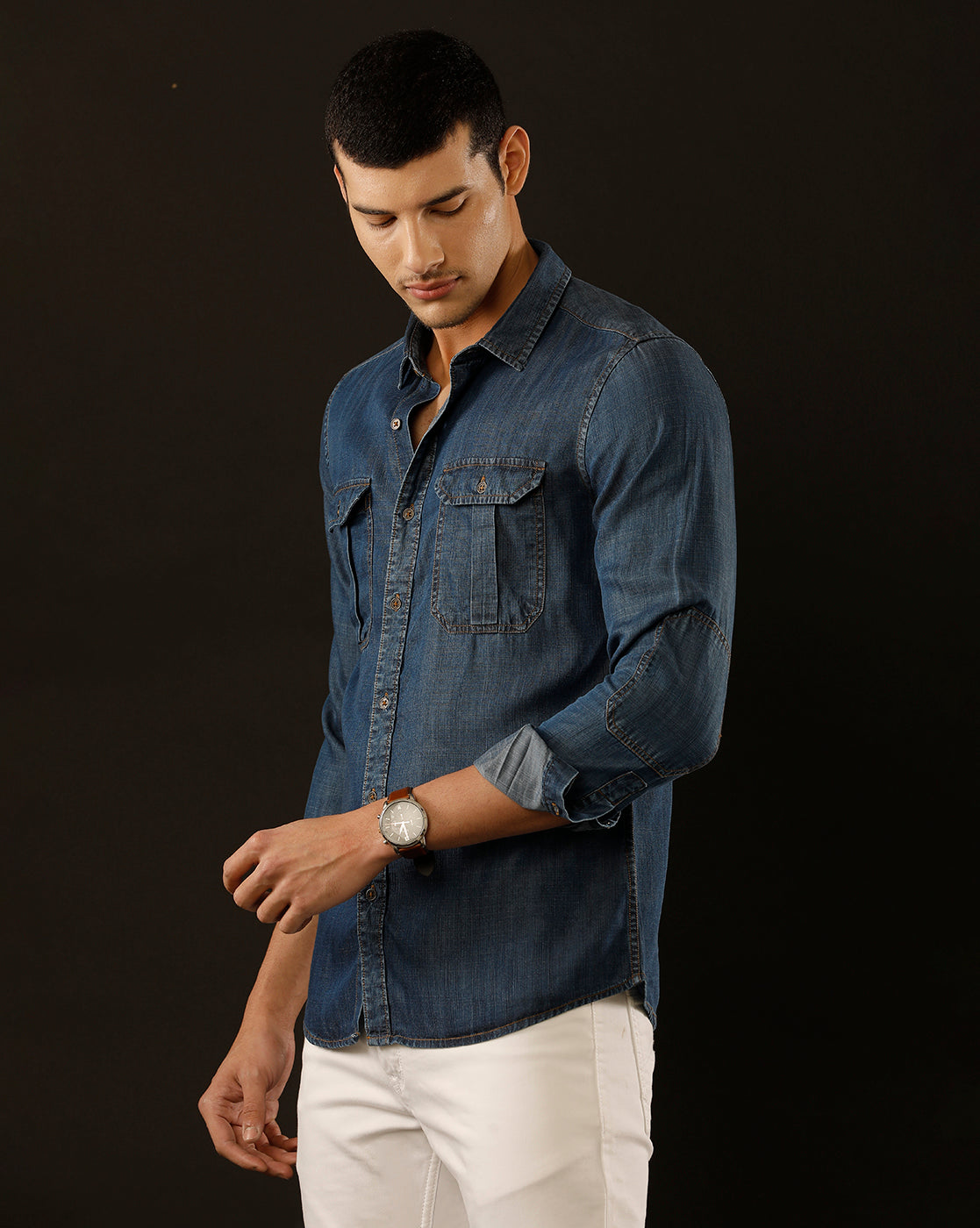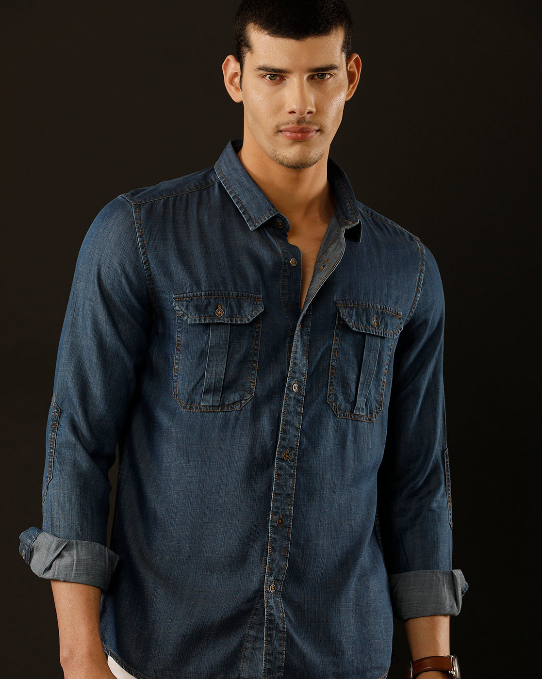 Men's Slim Fit Solid Denim Casual Shirt (PONDI)