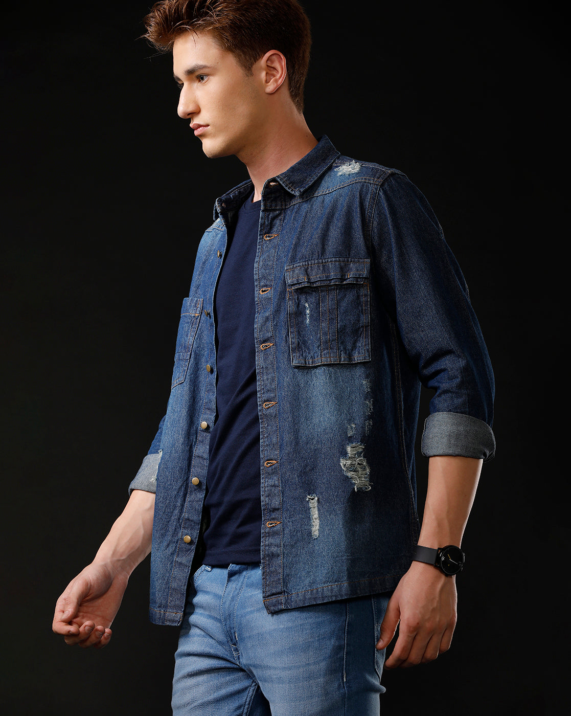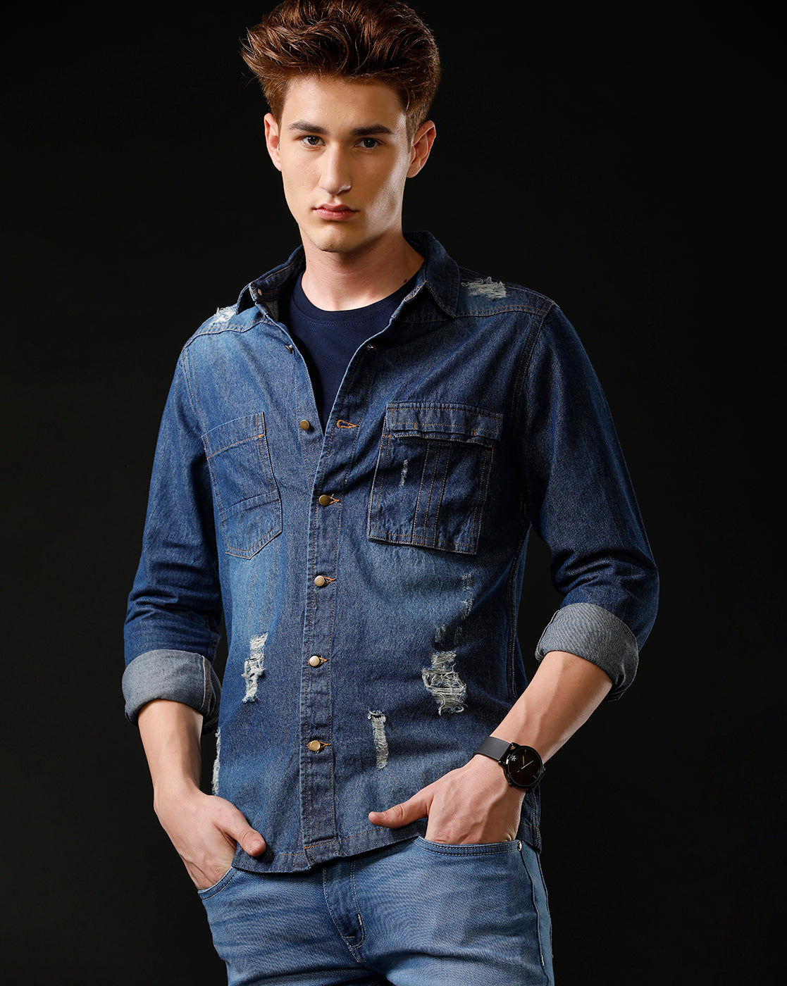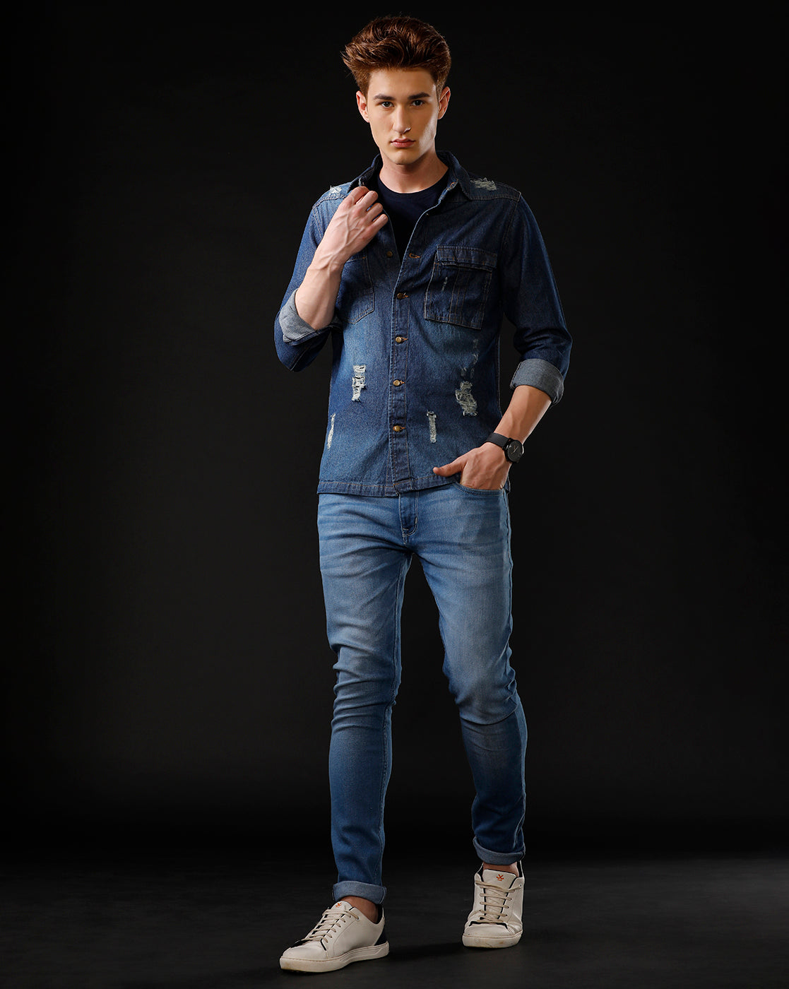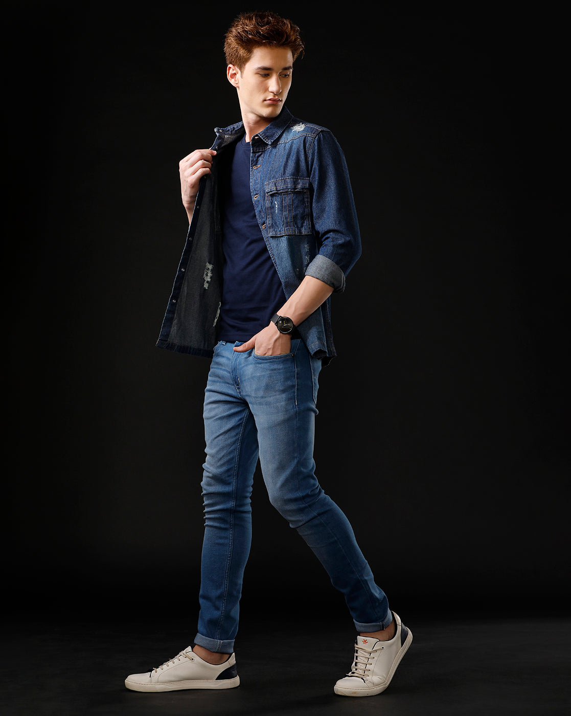 Take your fashion quotient one notch high by putting on this TEMPLE OF DENIM Denim Jacket . It is featured product Combination of Shirt and Jacket with full sleeves and is stitched to slim fit. Made with excellent quality denim, it promises to provide complete ease to the body.