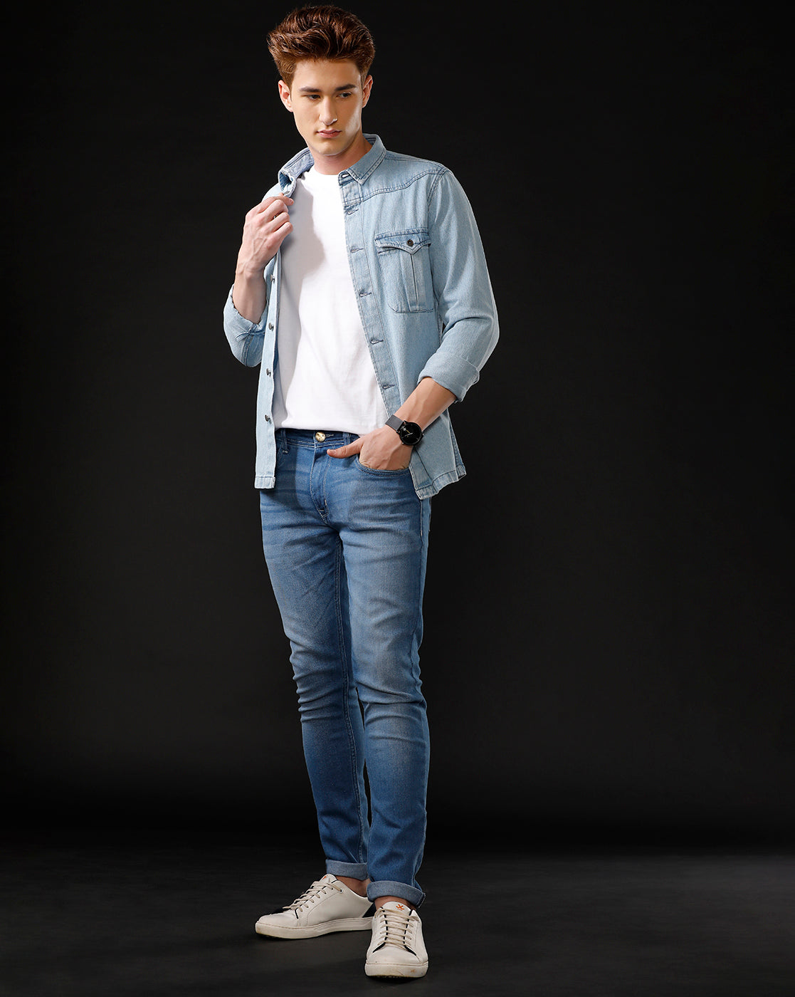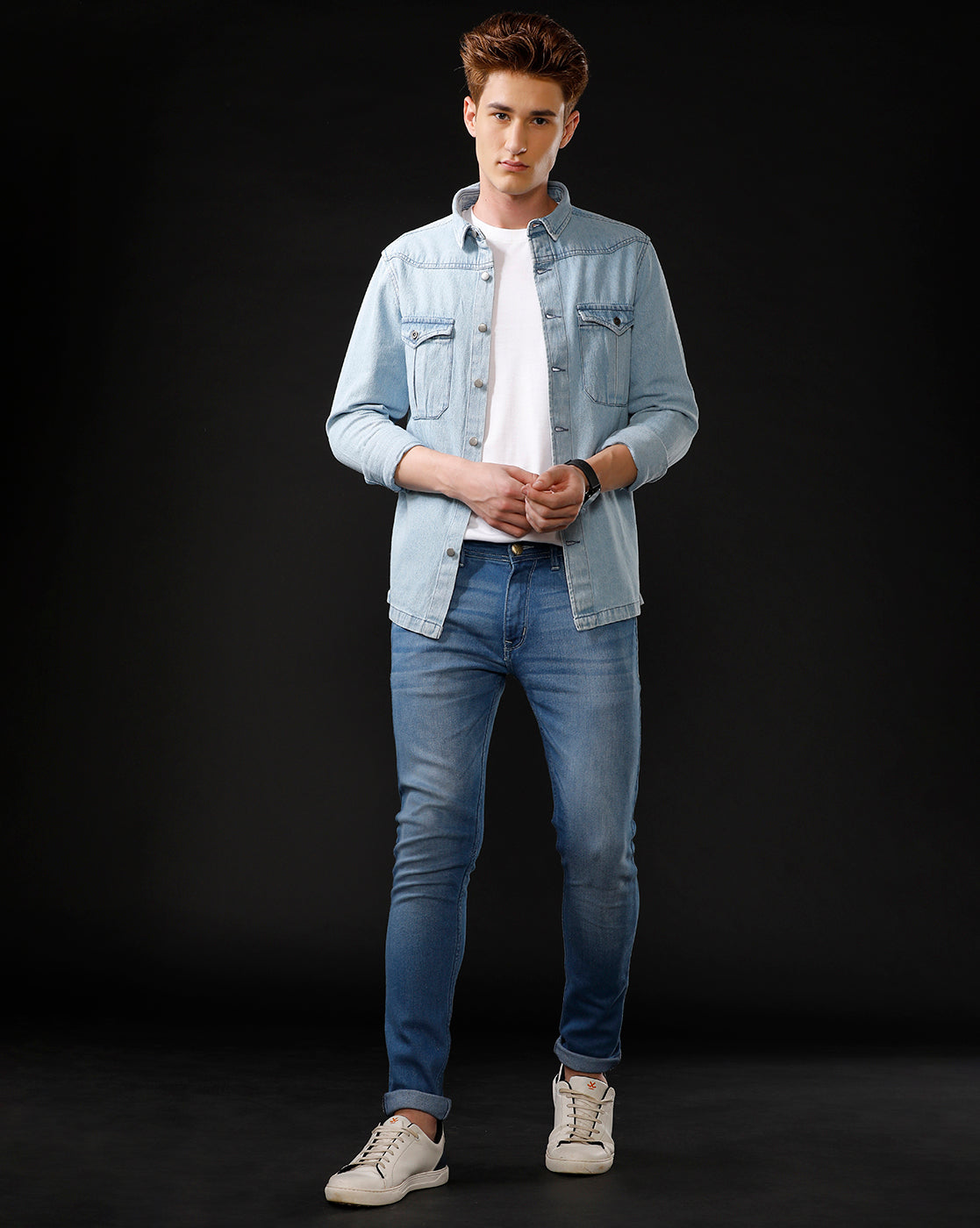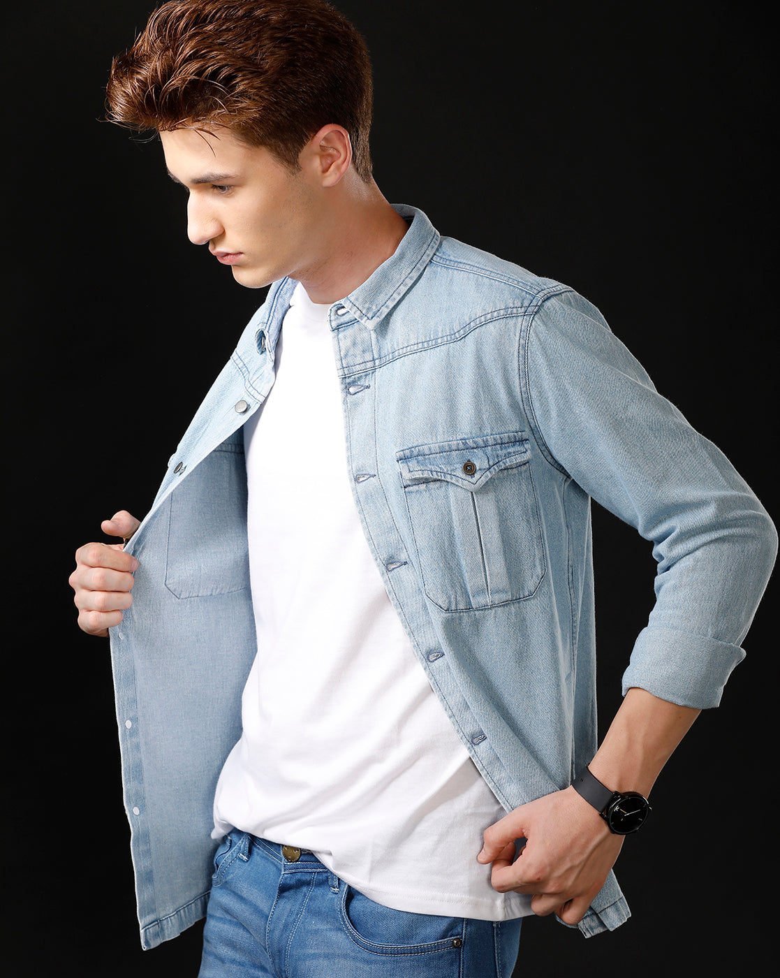 Take your fashion quotient one notch high by putting on this TEMPLE OF DENIM Denim Jacket . It is featured product Combination of Shirt and Jacket with full sleeves and is stitched to slim fit. Made with excellent quality denim, it promises to provide complete ease to the body.
