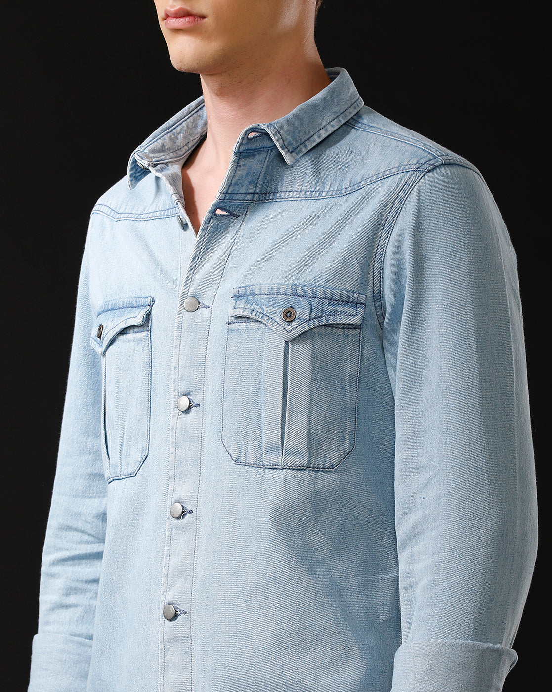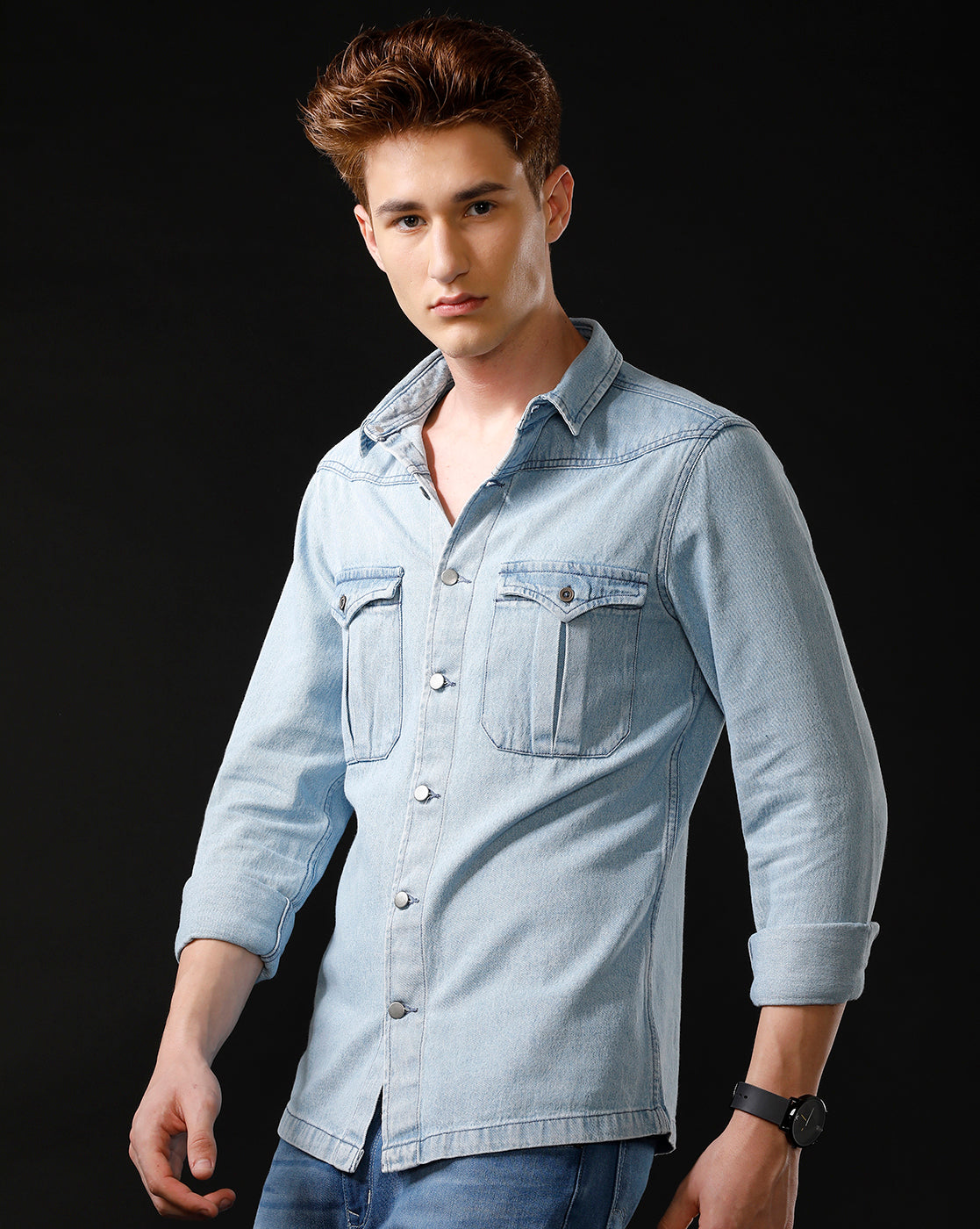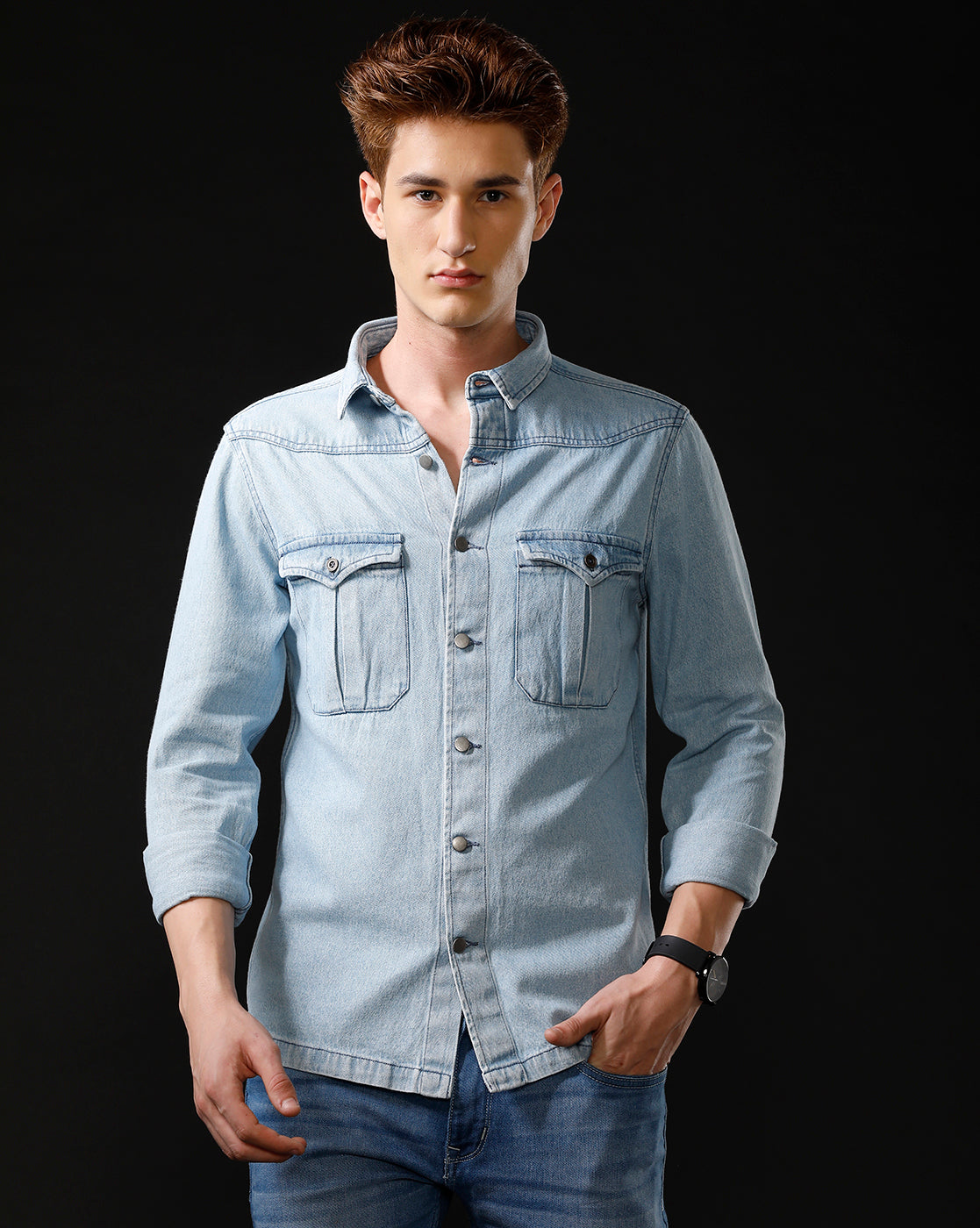 Take your fashion quotient one notch high by putting on this TEMPLE OF DENIM Denim Jacket . It is featured product Combination of Shirt and Jacket with full sleeves and is stitched to slim fit. Made with excellent quality denim, it promises to provide complete ease to the body.