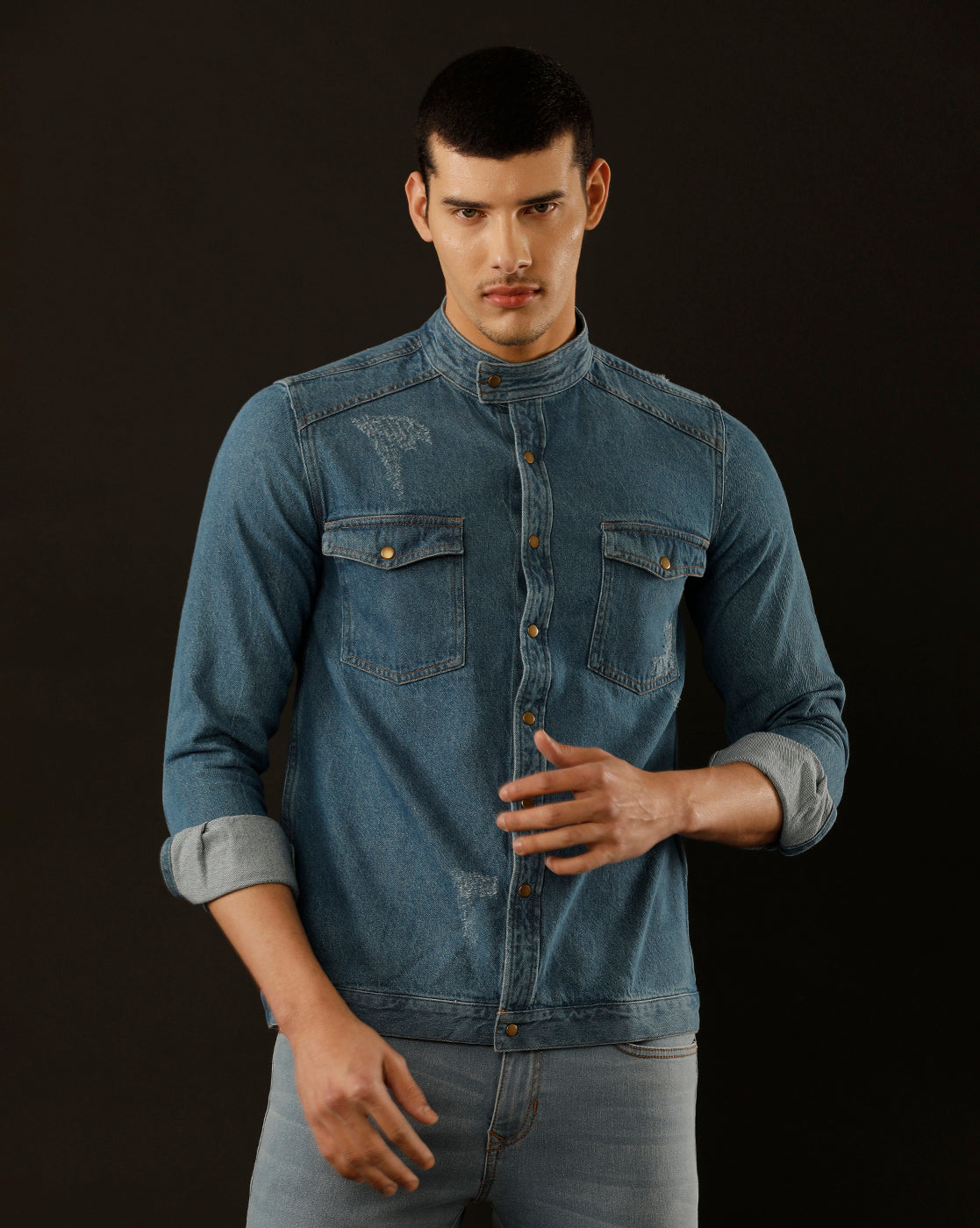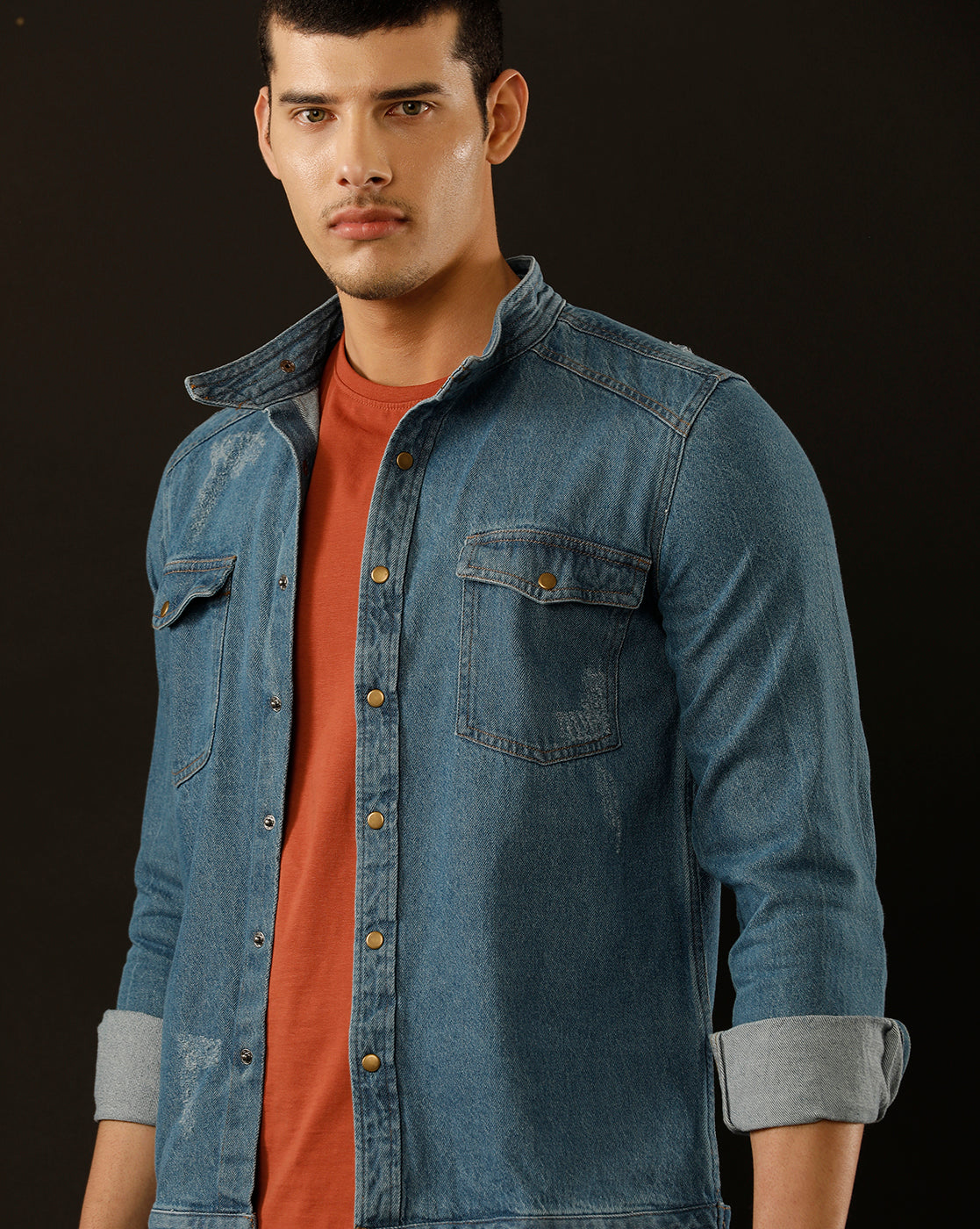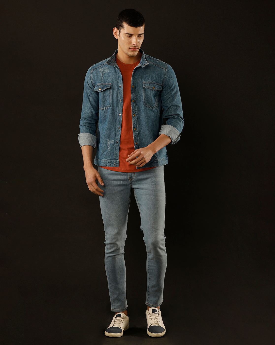 Take your fashion quotient one notch high by putting on this TEMPLE OF DENIM Denim Jacket . It is featured product Combination of Shirt and Jacket with full sleeves and is stitched to slim fit. Made with excellent quality denim, it promises to provide complete ease to the body.