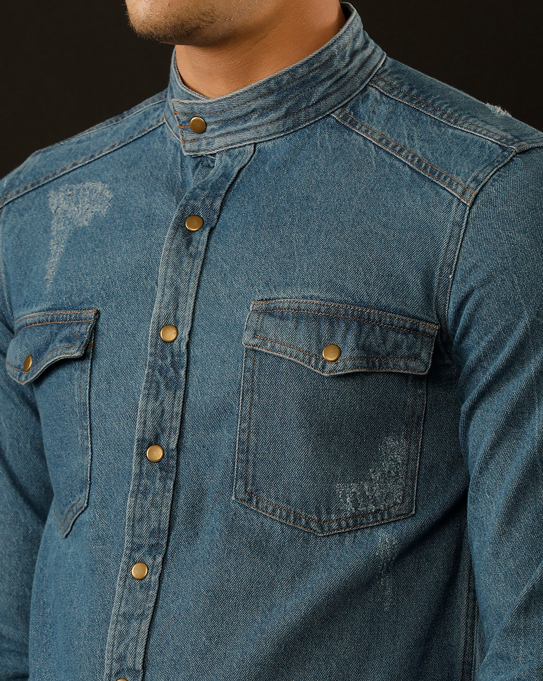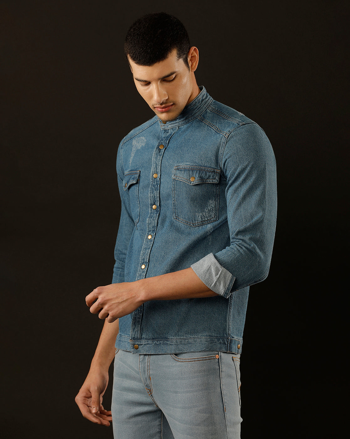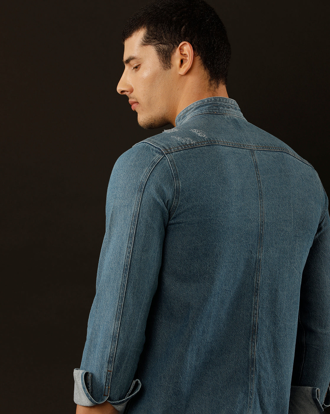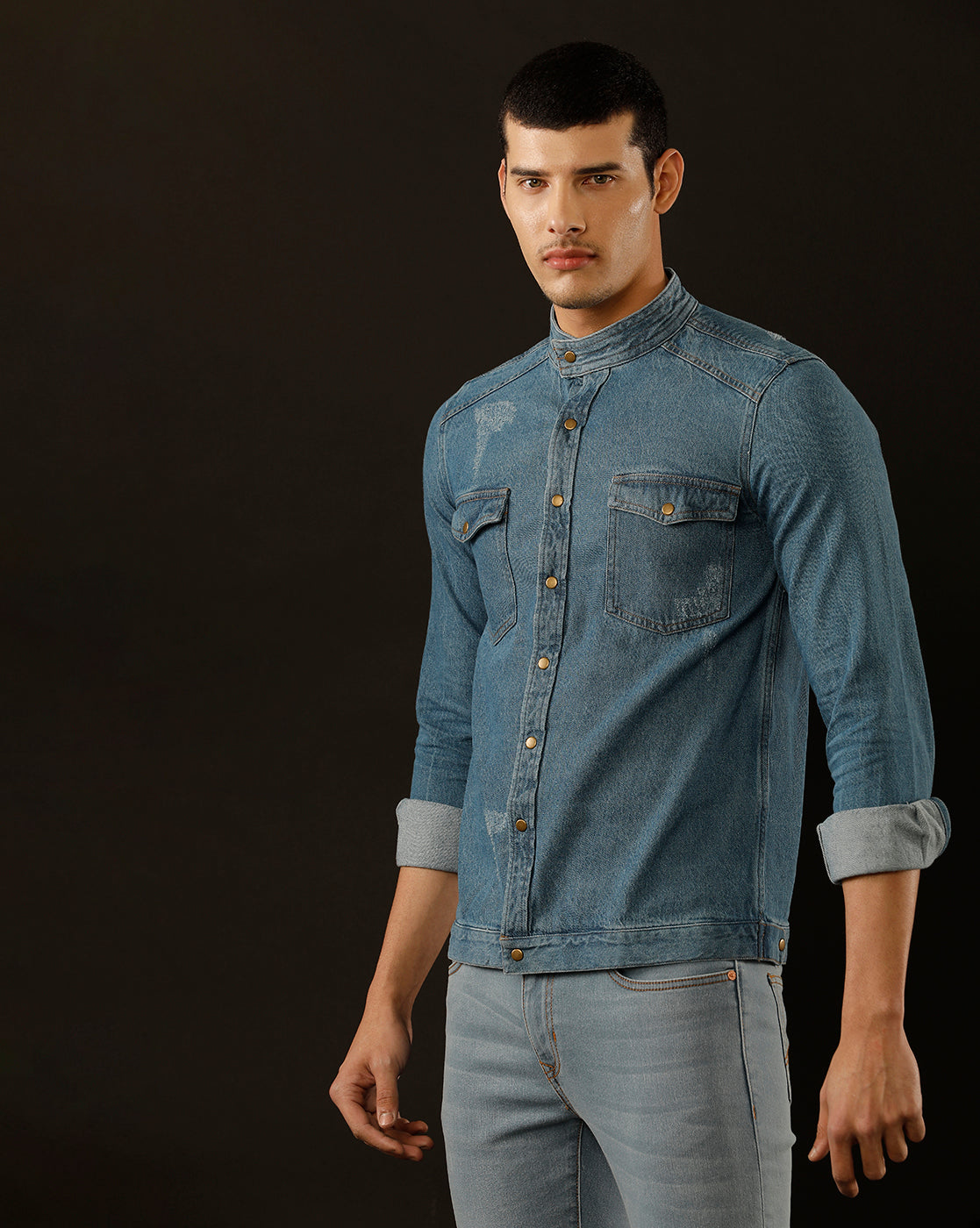 Take your fashion quotient one notch high by putting on this TEMPLE OF DENIM Denim Jacket . It is featured product Combination of Shirt and Jacket with full sleeves and is stitched to slim fit. Made with excellent quality denim, it promises to provide complete ease to the body.