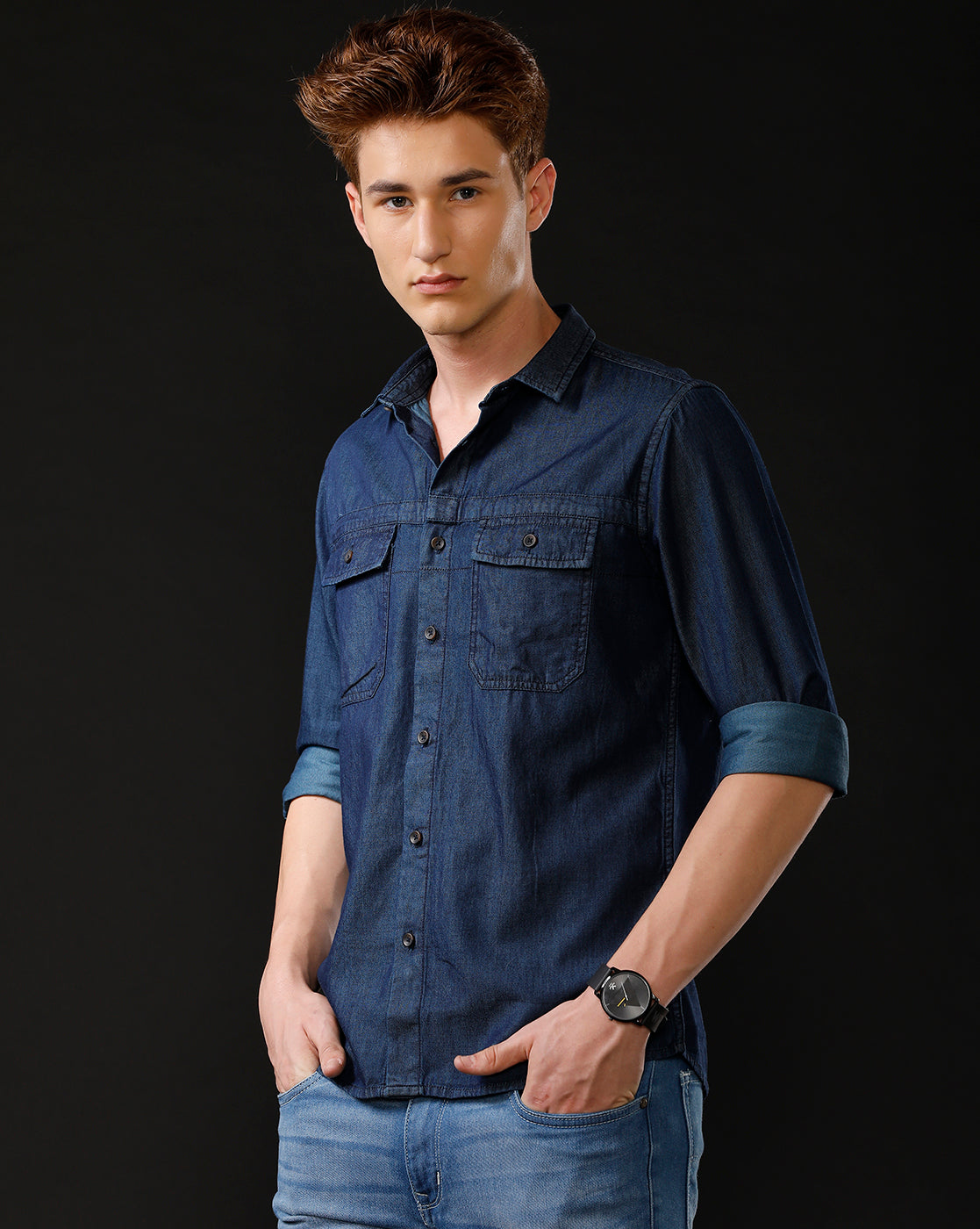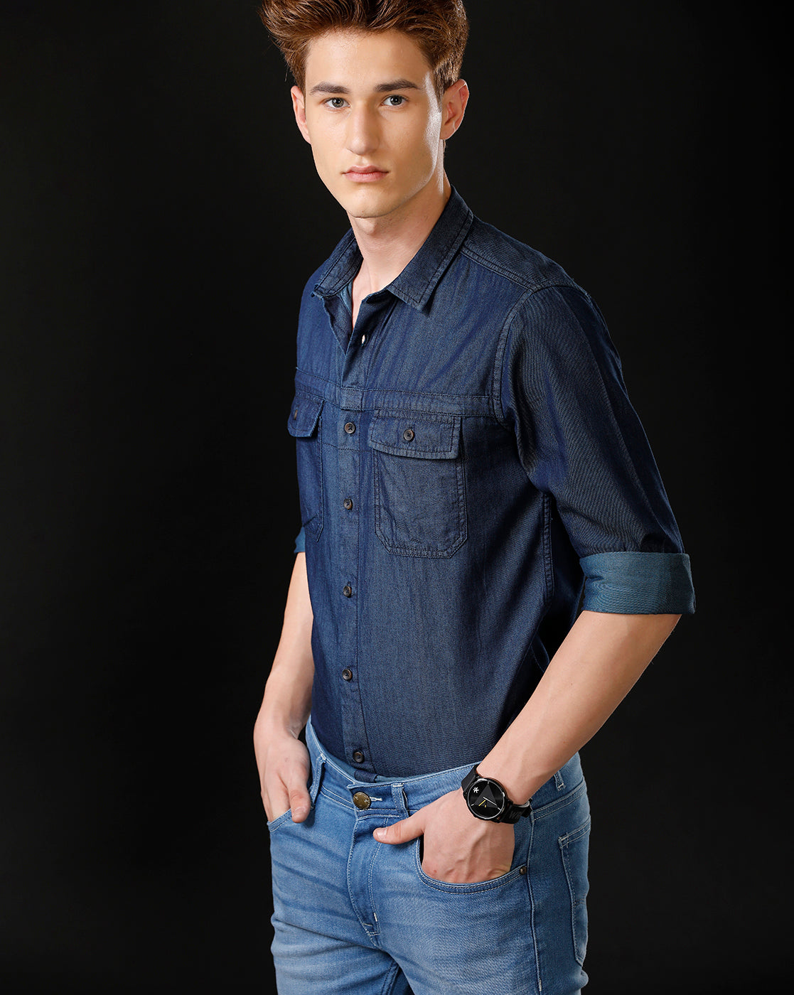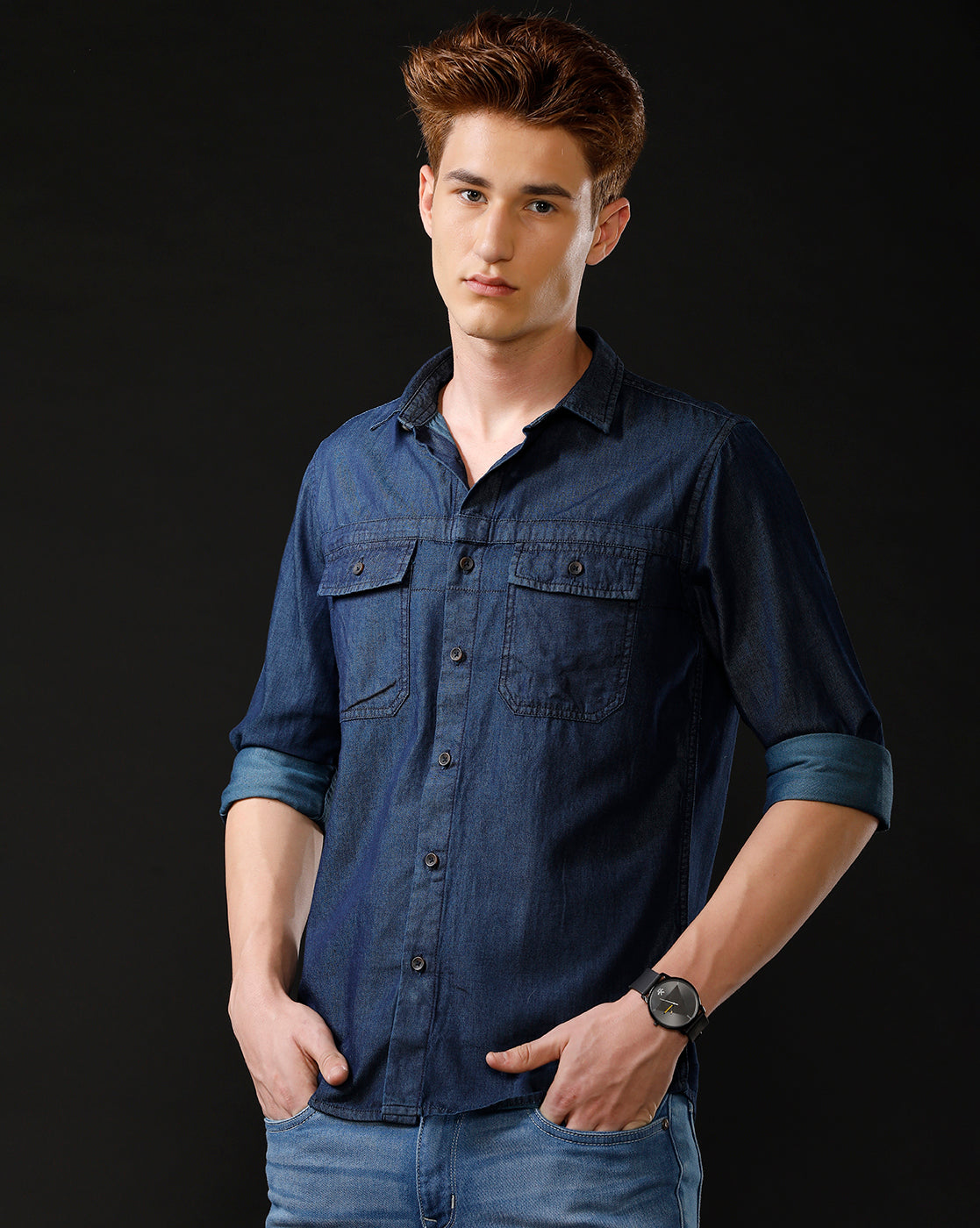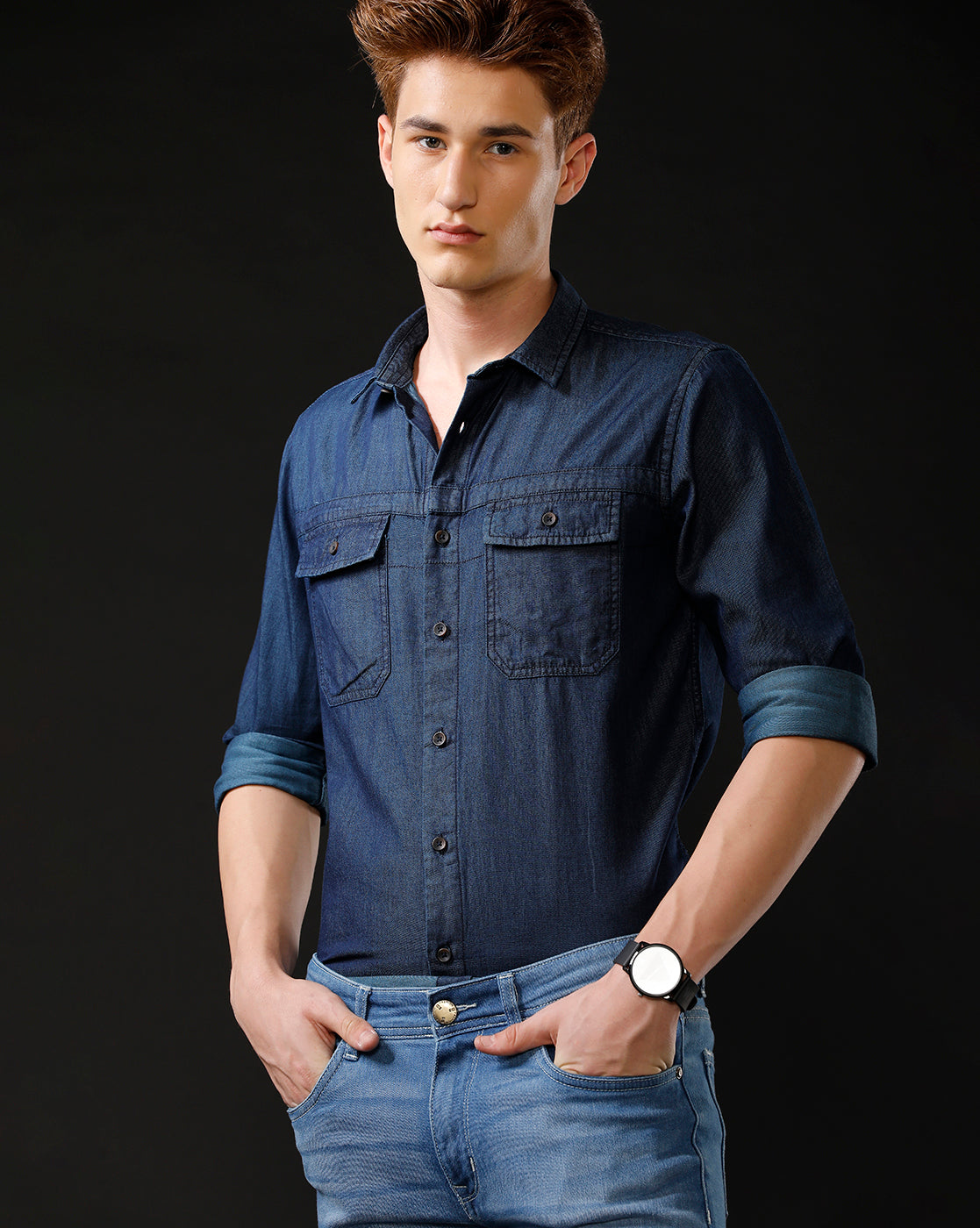 Men's Slim Fit Solid Denim Casual Shirt (STORT)