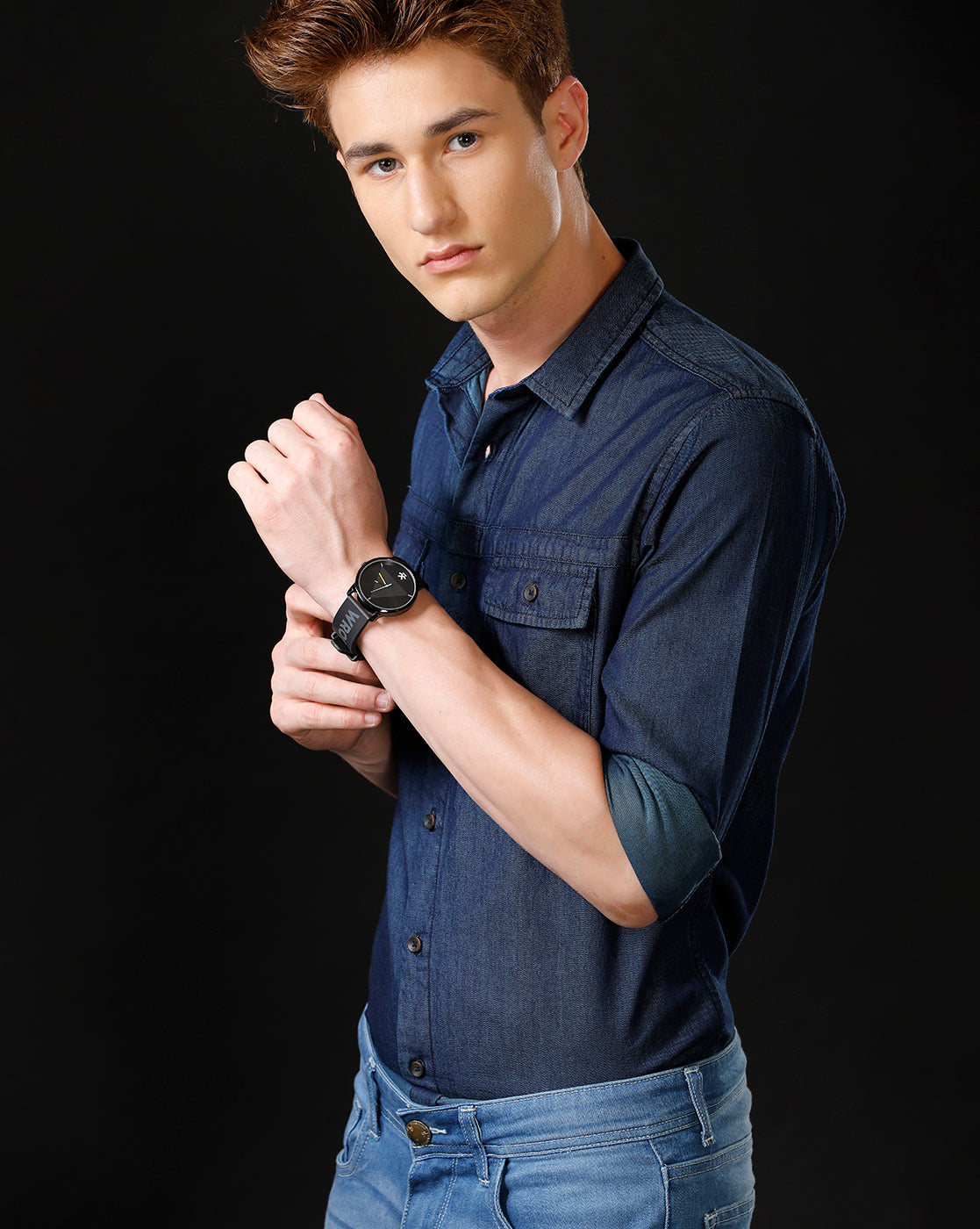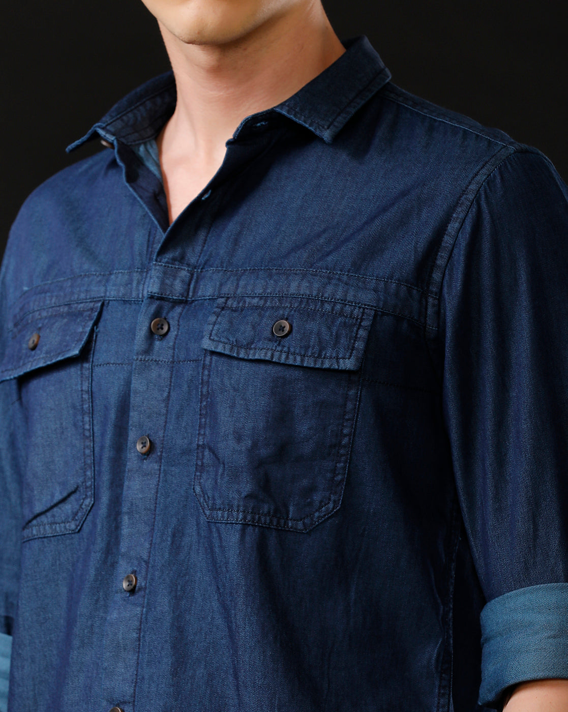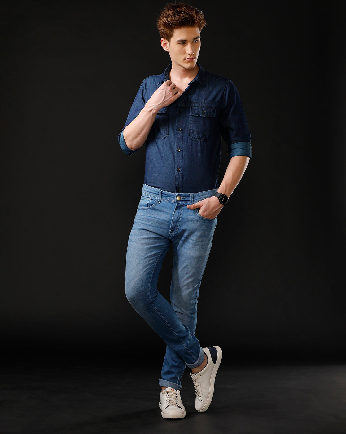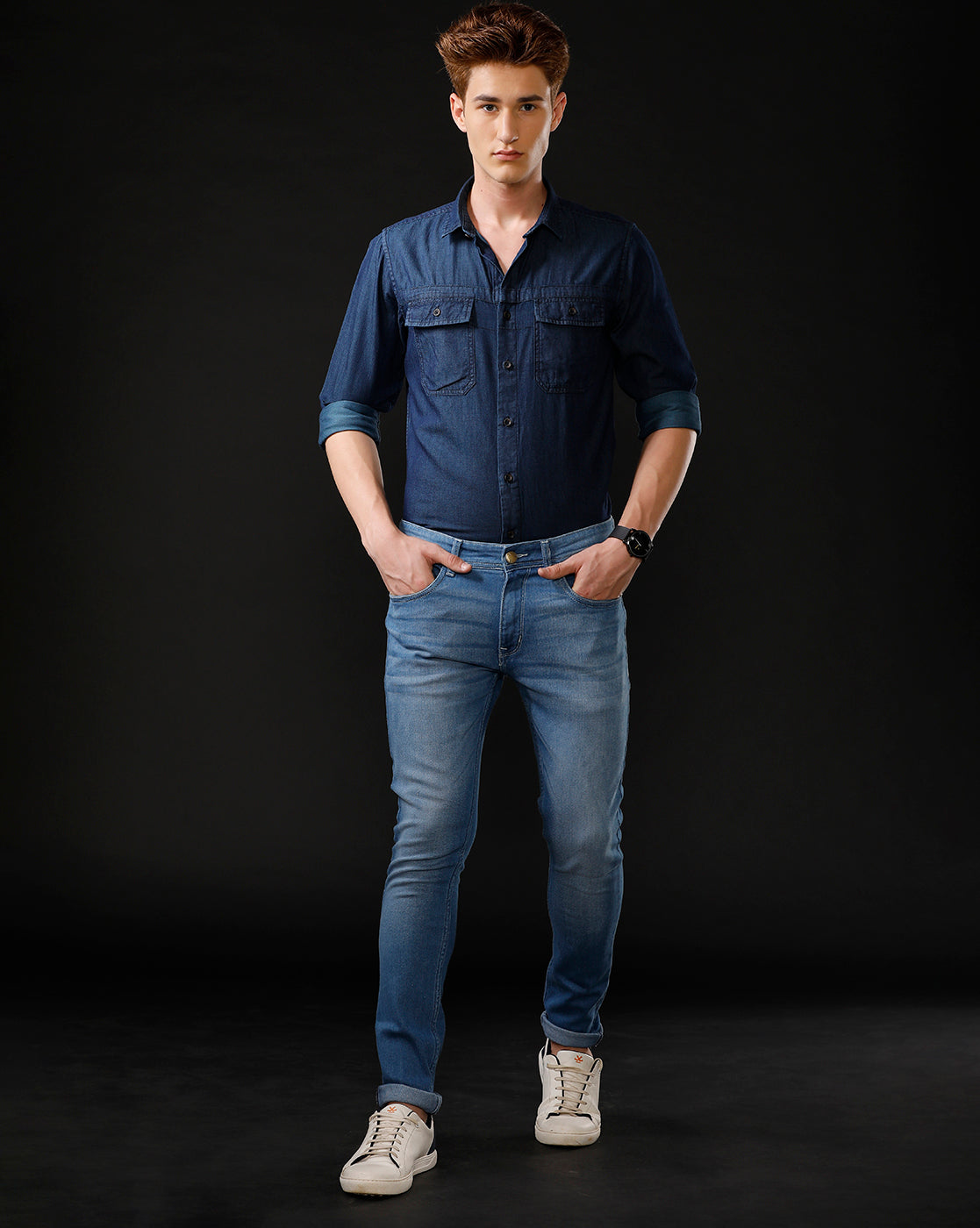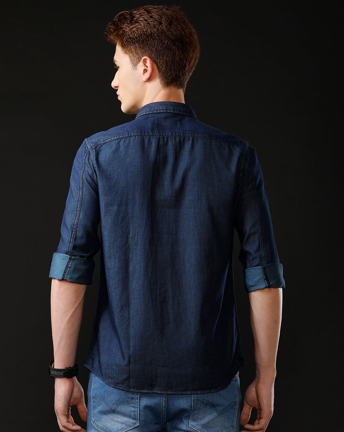 Men's Slim Fit Solid Denim Casual Shirt (STORT)