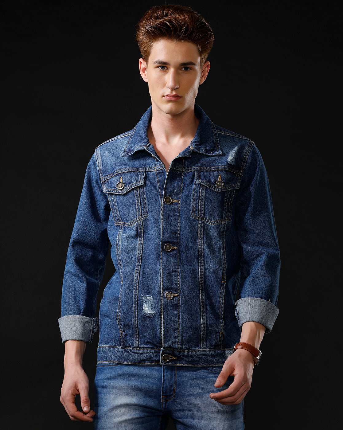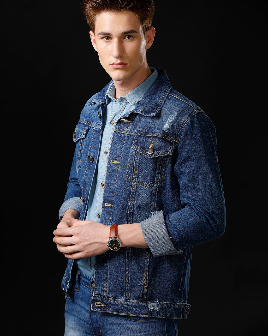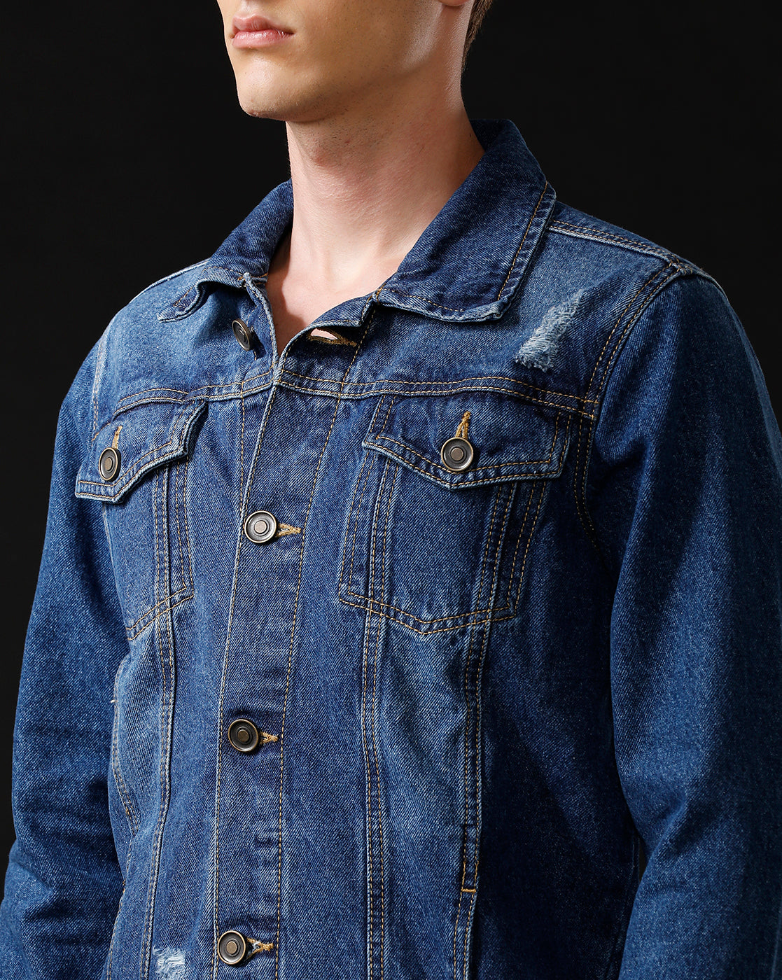 TEMPLE OF DENIM Full Sleeve Washed Men Denim Jacket.
