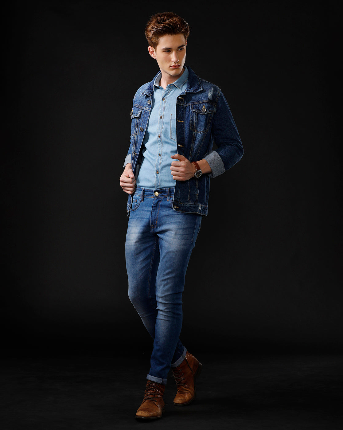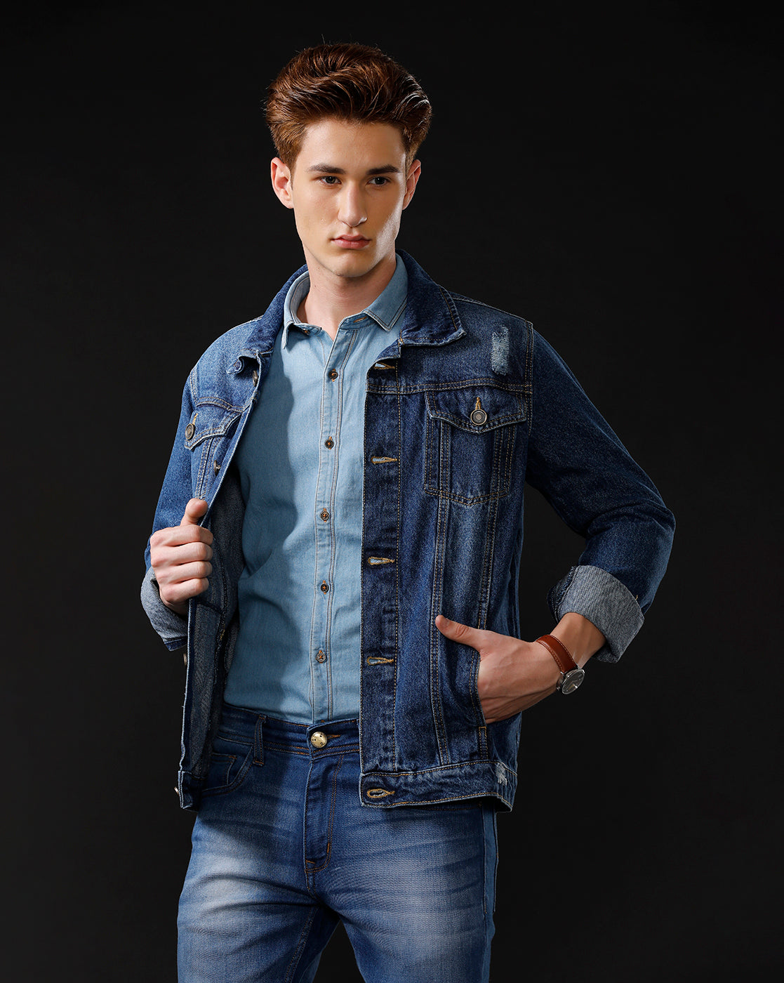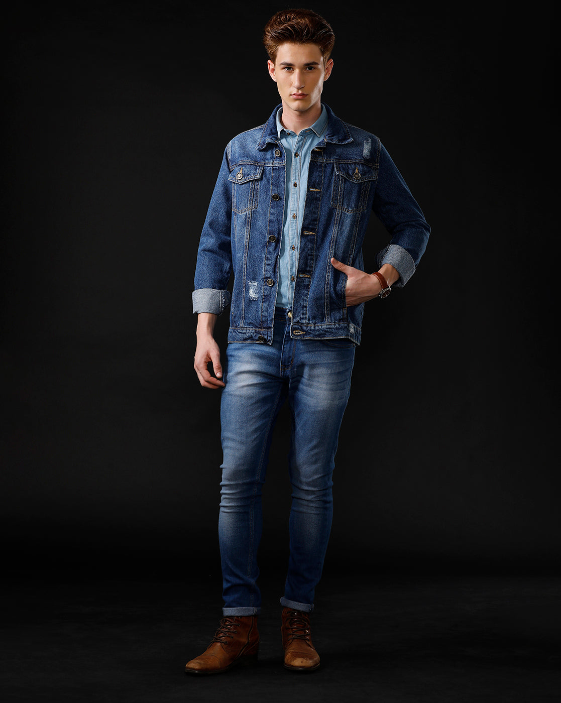 TEMPLE OF DENIM Full Sleeve Washed Men Denim Jacket.