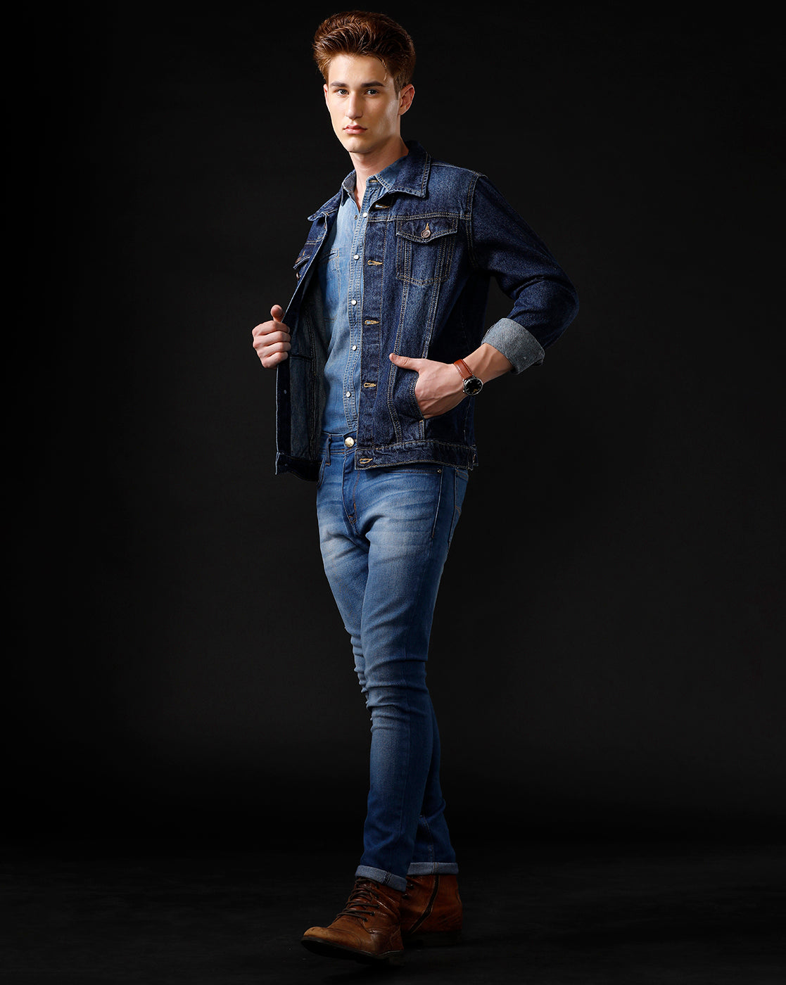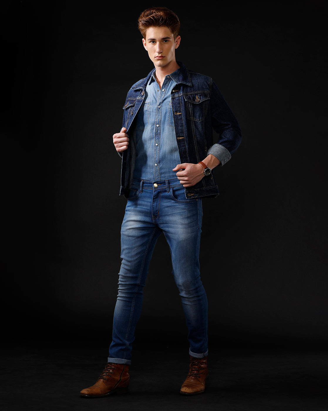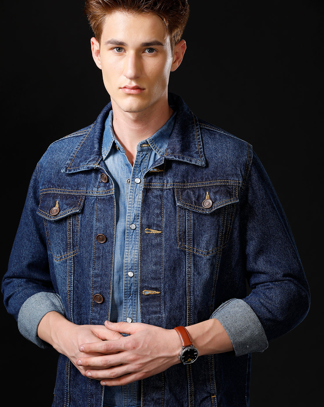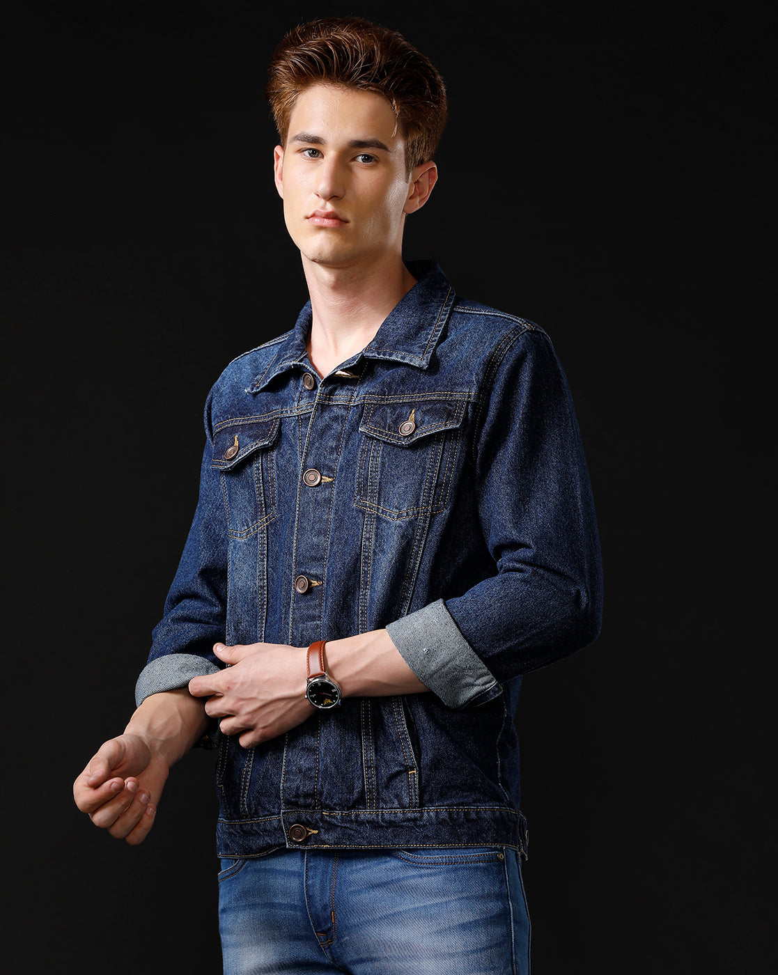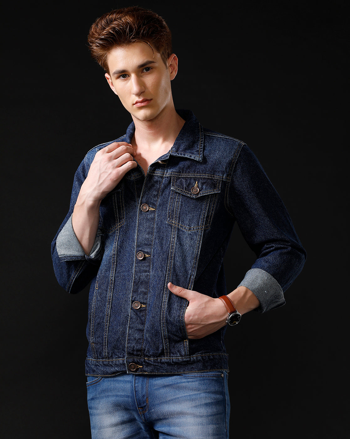 TEMPLE OF DENIM Full Sleeve Solid Men Denim Jacket.