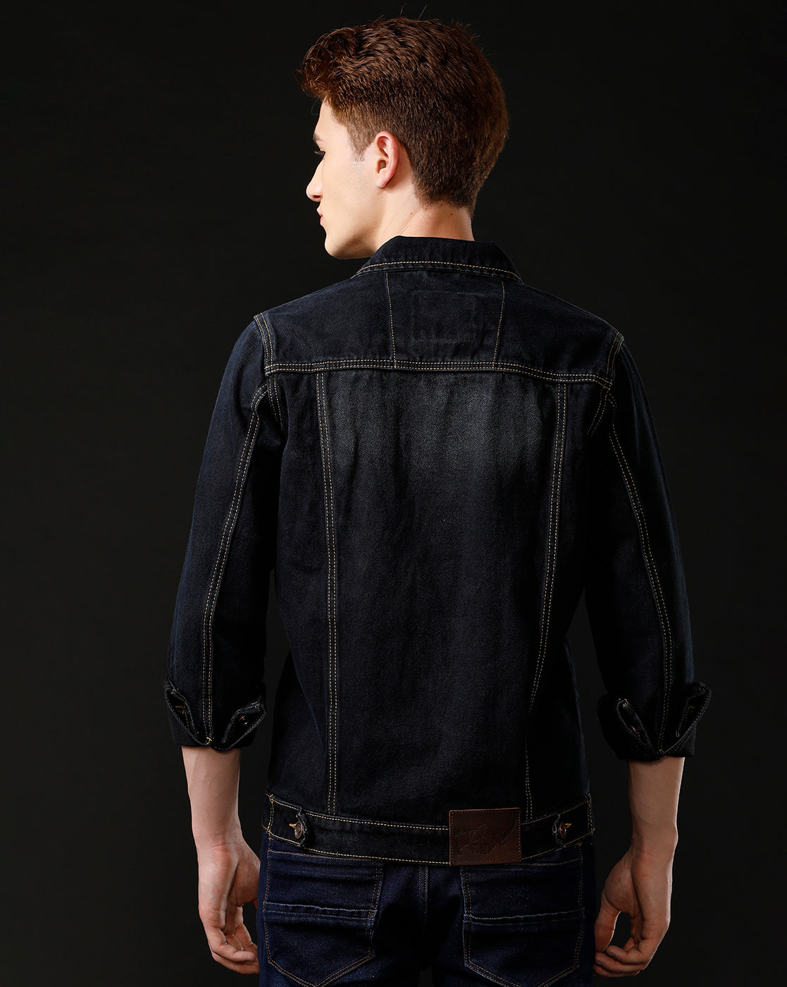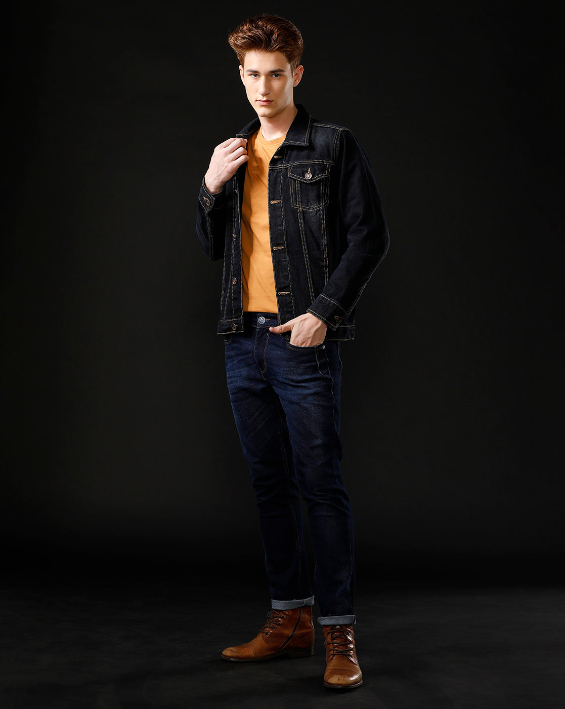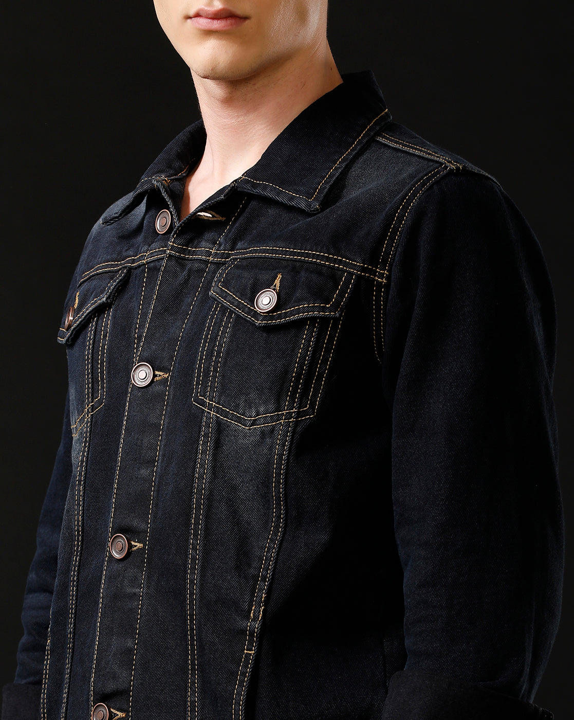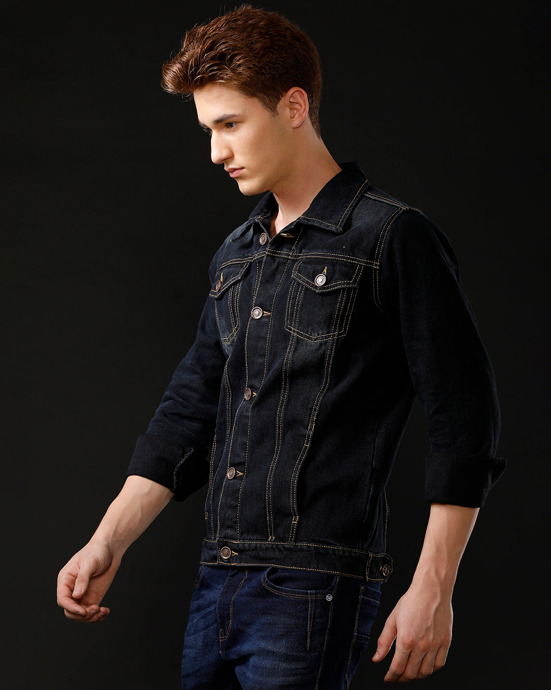 TEMPLE OF DENIM Full Sleeve Solid Men Denim Jacket.