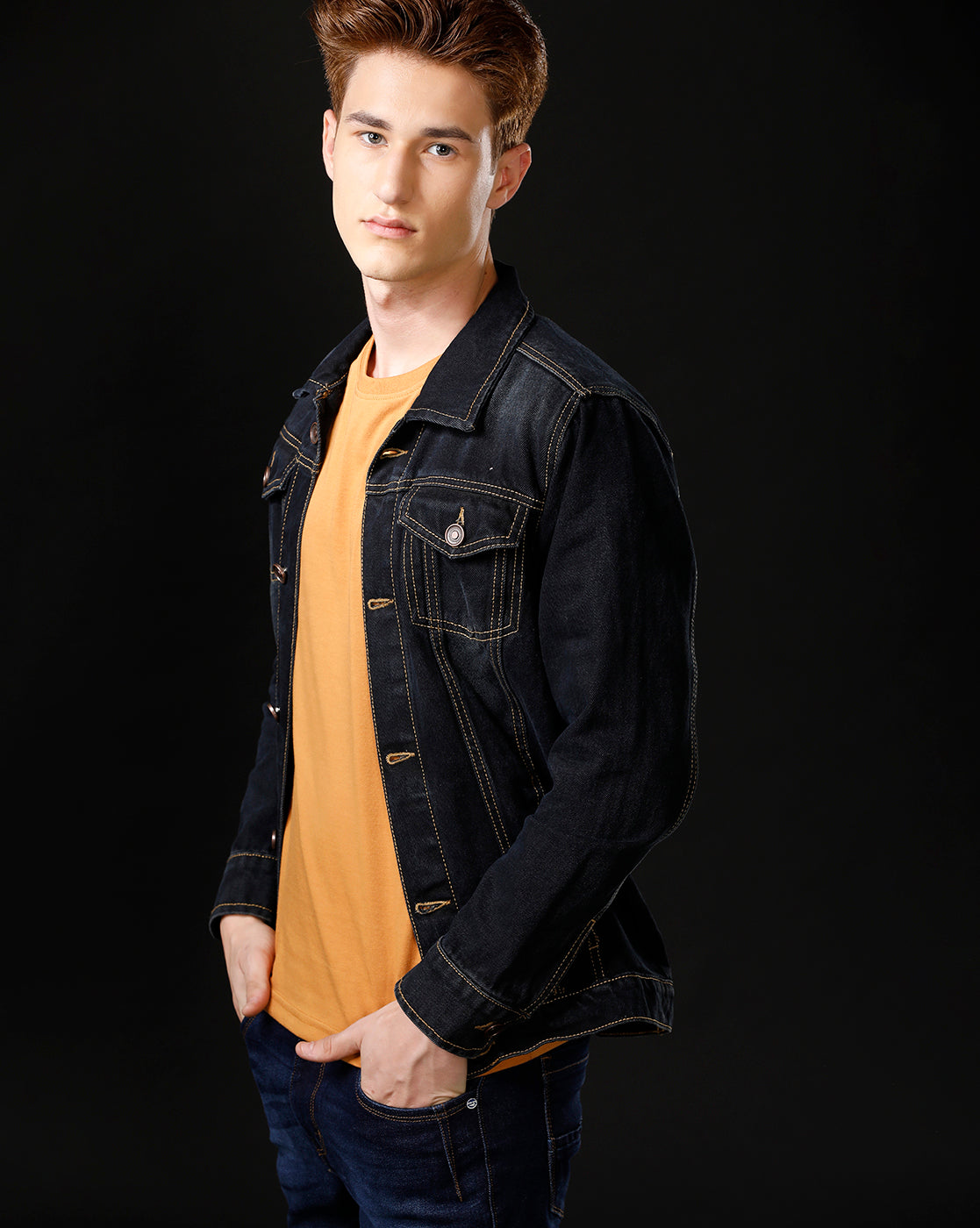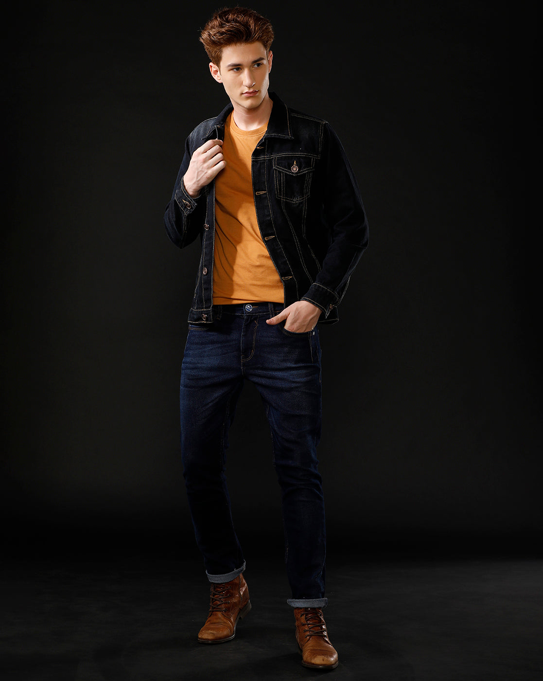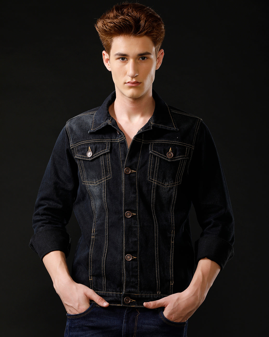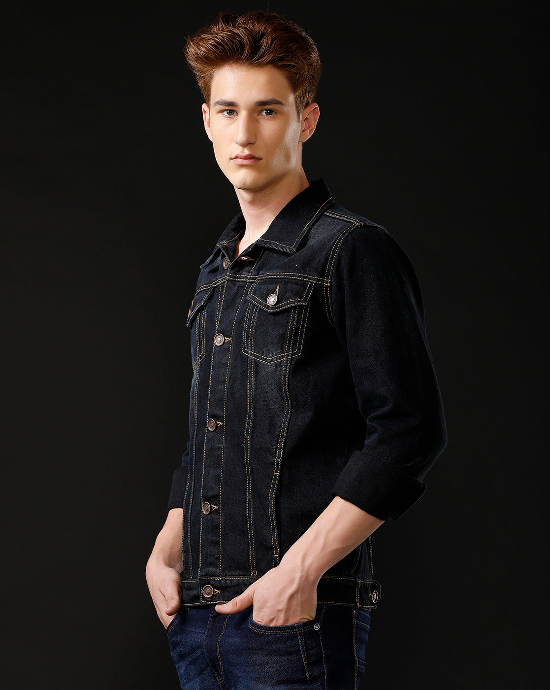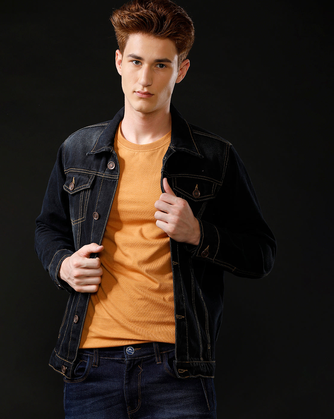 TEMPLE OF DENIM Full Sleeve Solid Men Denim Jacket.