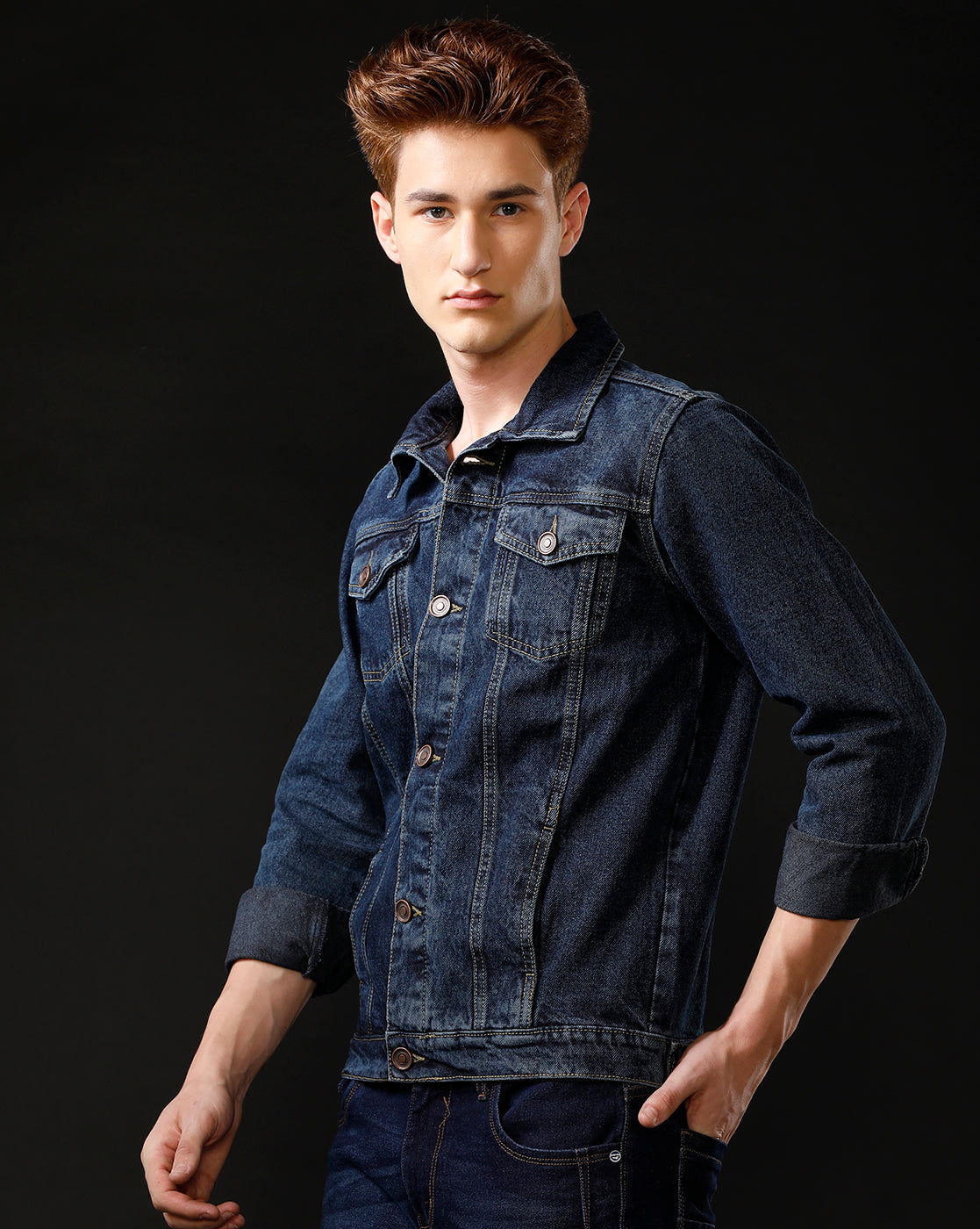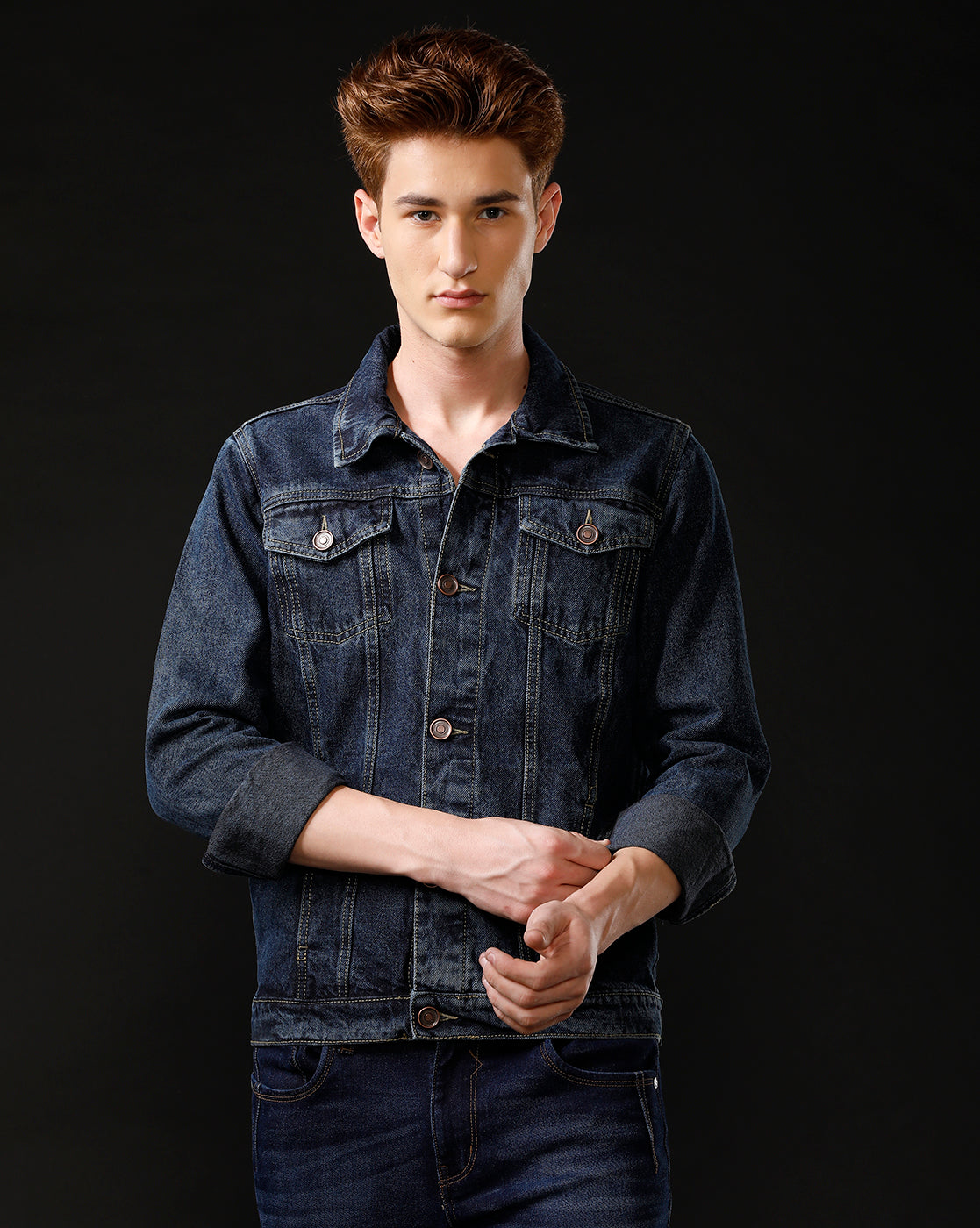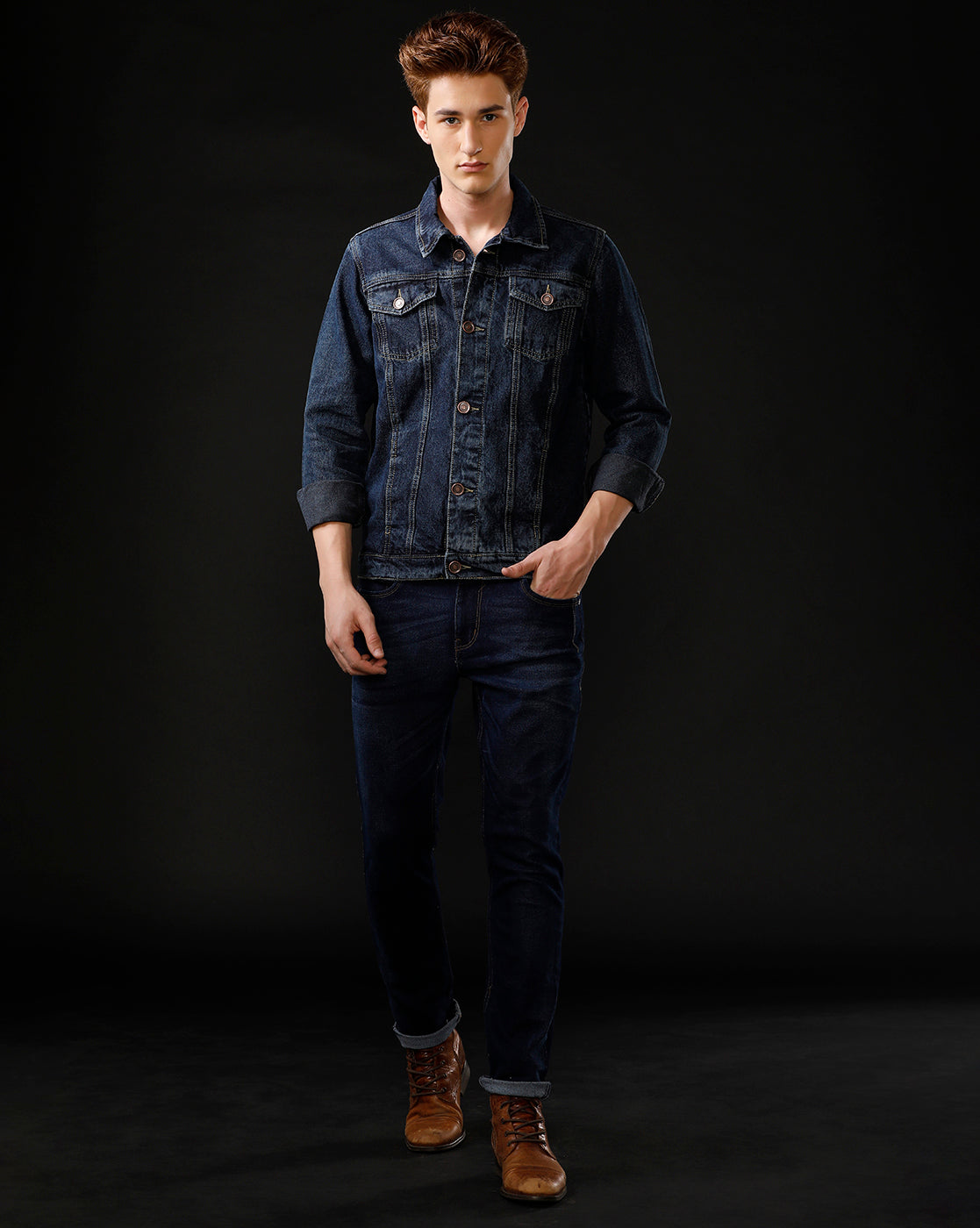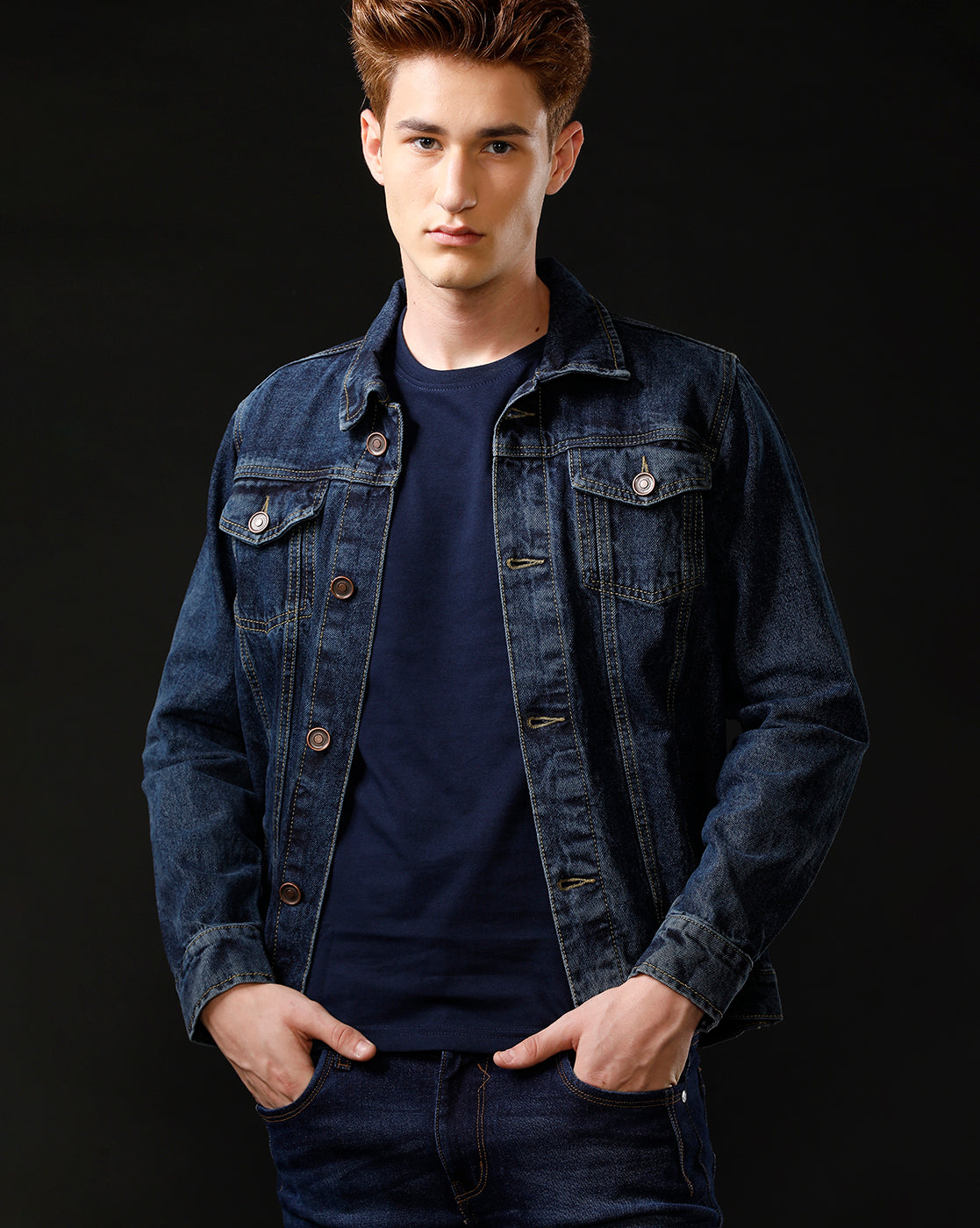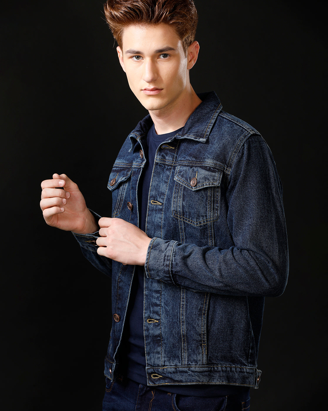 TEMPLE OF DENIM Full Sleeve Solid Men Denim Jacket.