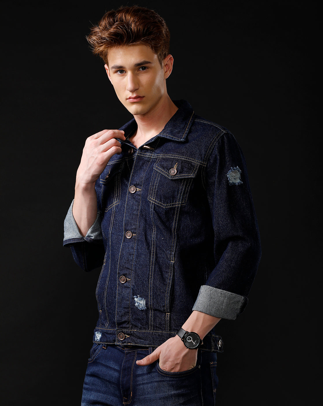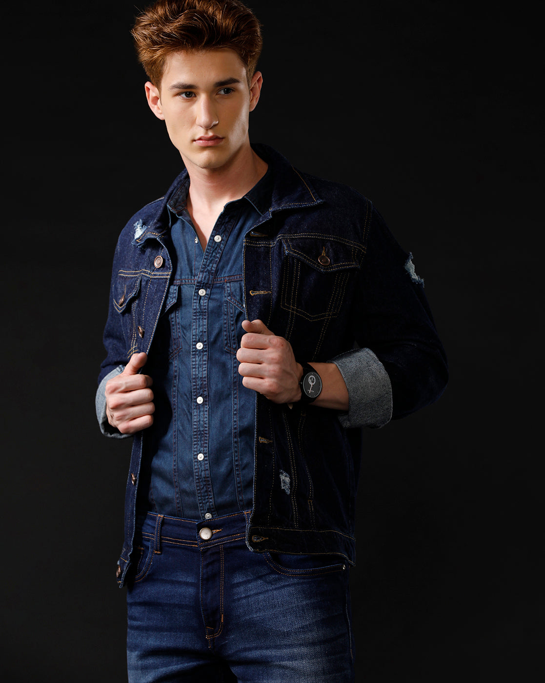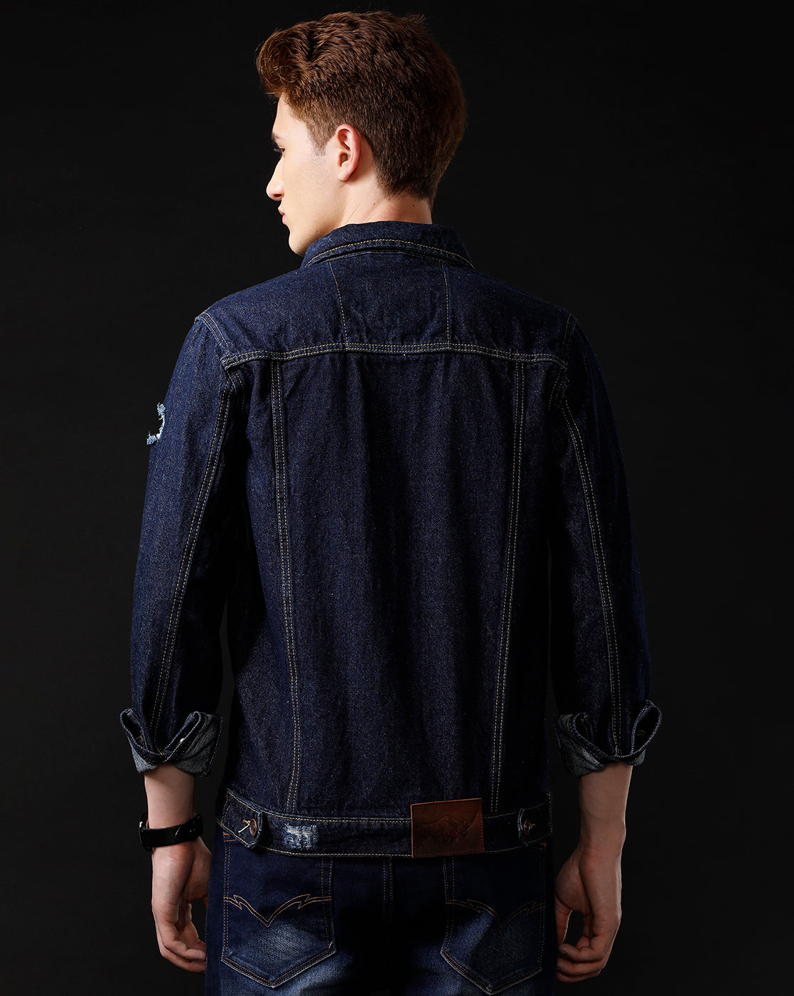 TEMPLE OF DENIM Full Sleeve Solid Men Denim Jacket.