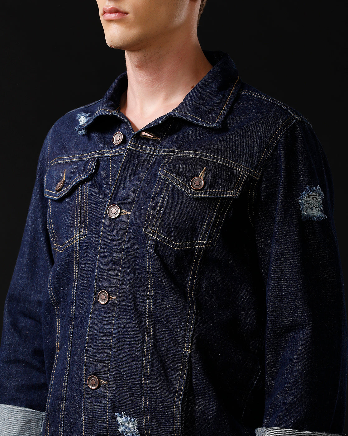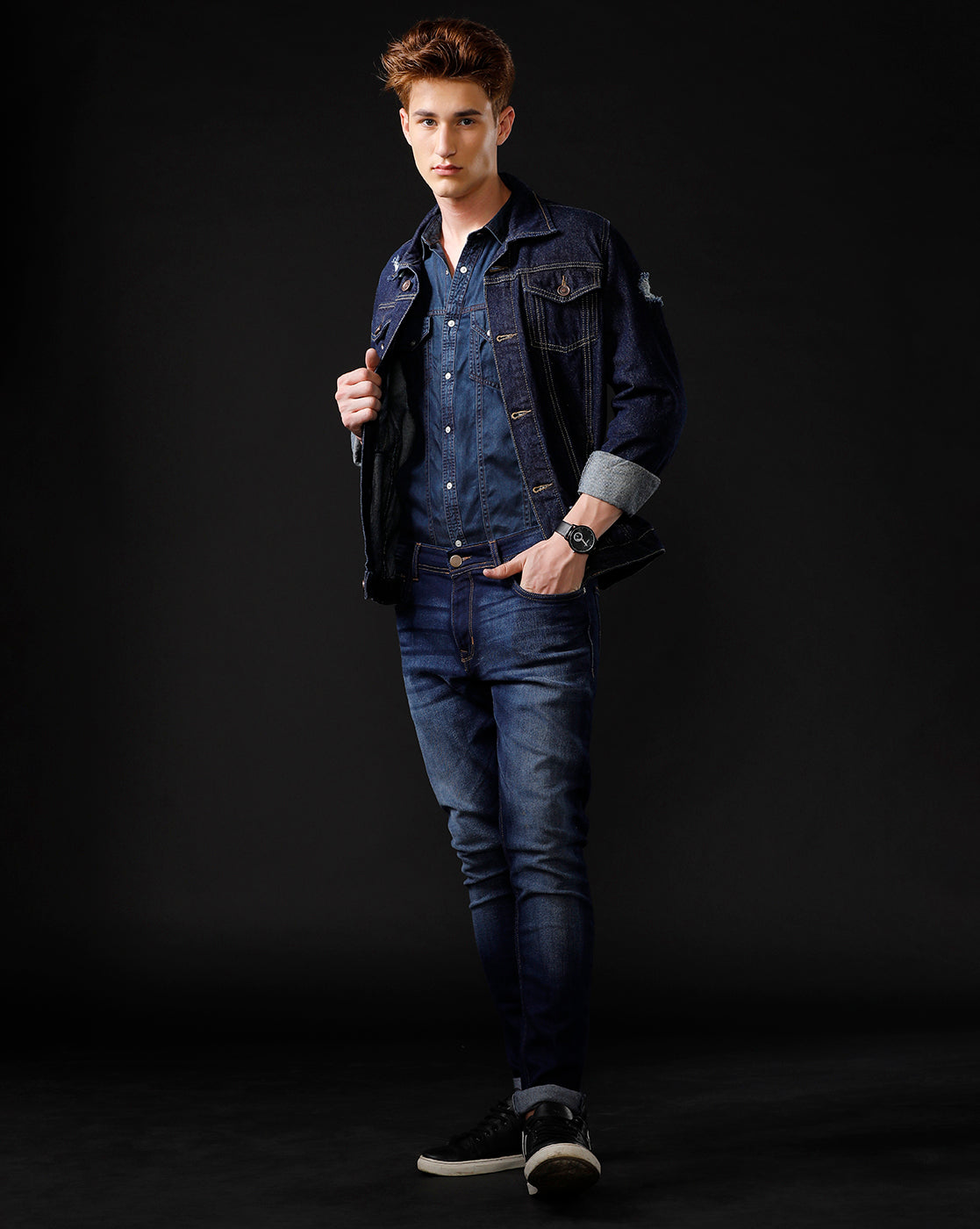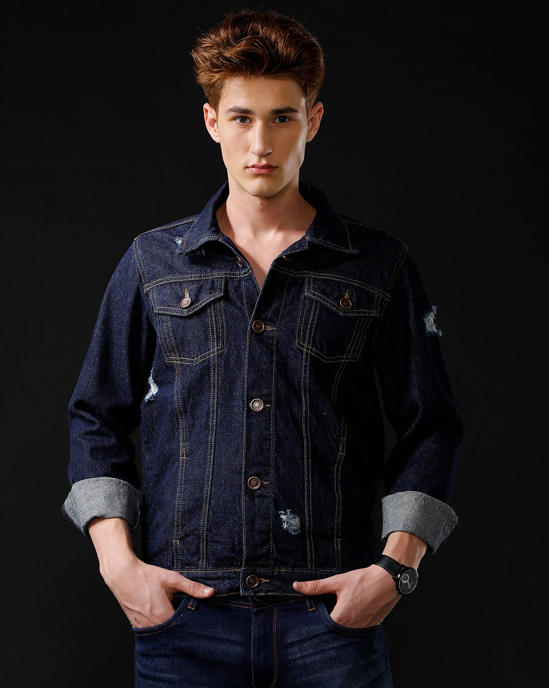 TEMPLE OF DENIM Full Sleeve Solid Men Denim Jacket.
